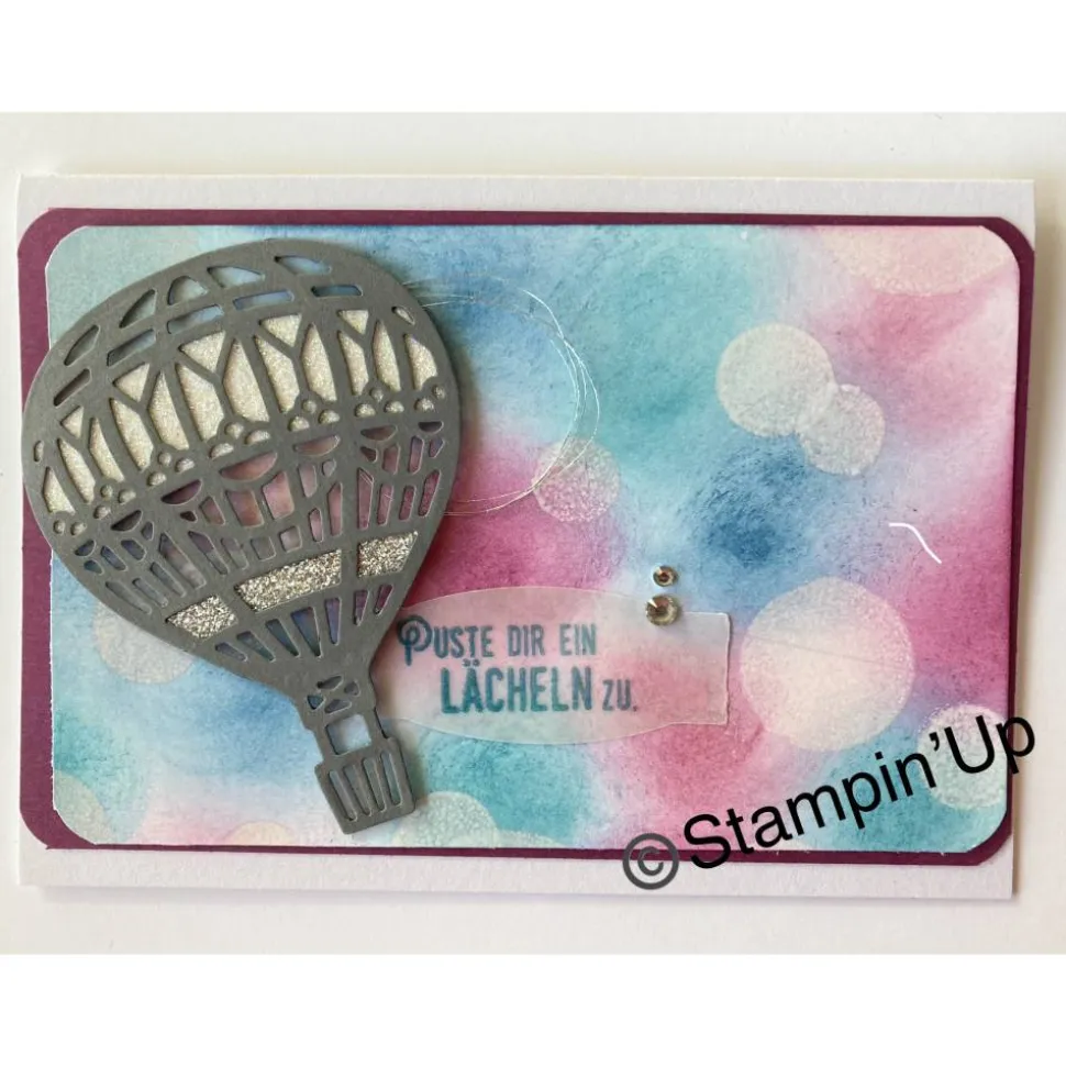 Auf der Kartenrückseite befindet sich ein Copyright Stempel von Stampin’Up. Mit dieser Karte verschenken Sie ein handgefertigtes Unikat.