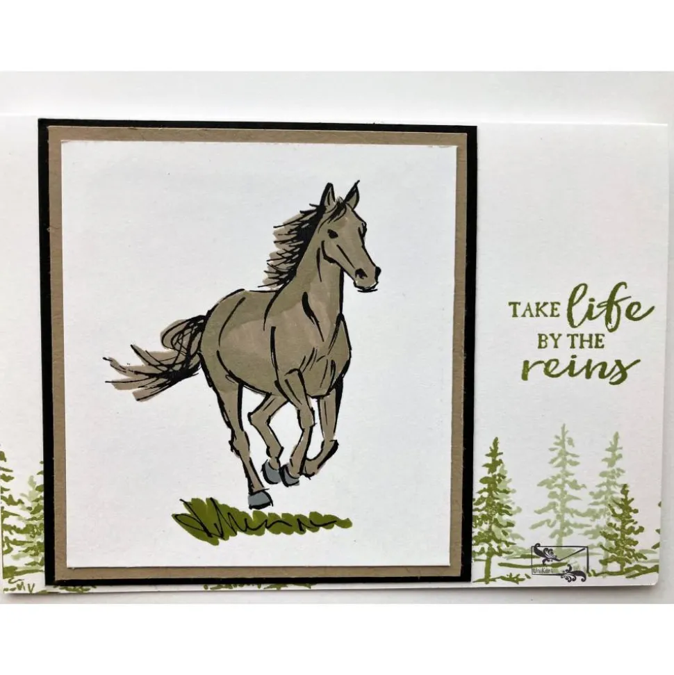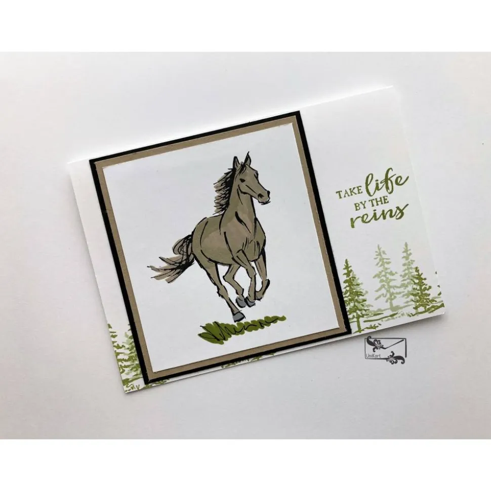 Dann ist diese handgearbeitete, liebevoll gestaltete Grußkarte für Pferdefreunde vielleicht etwas für Sie.