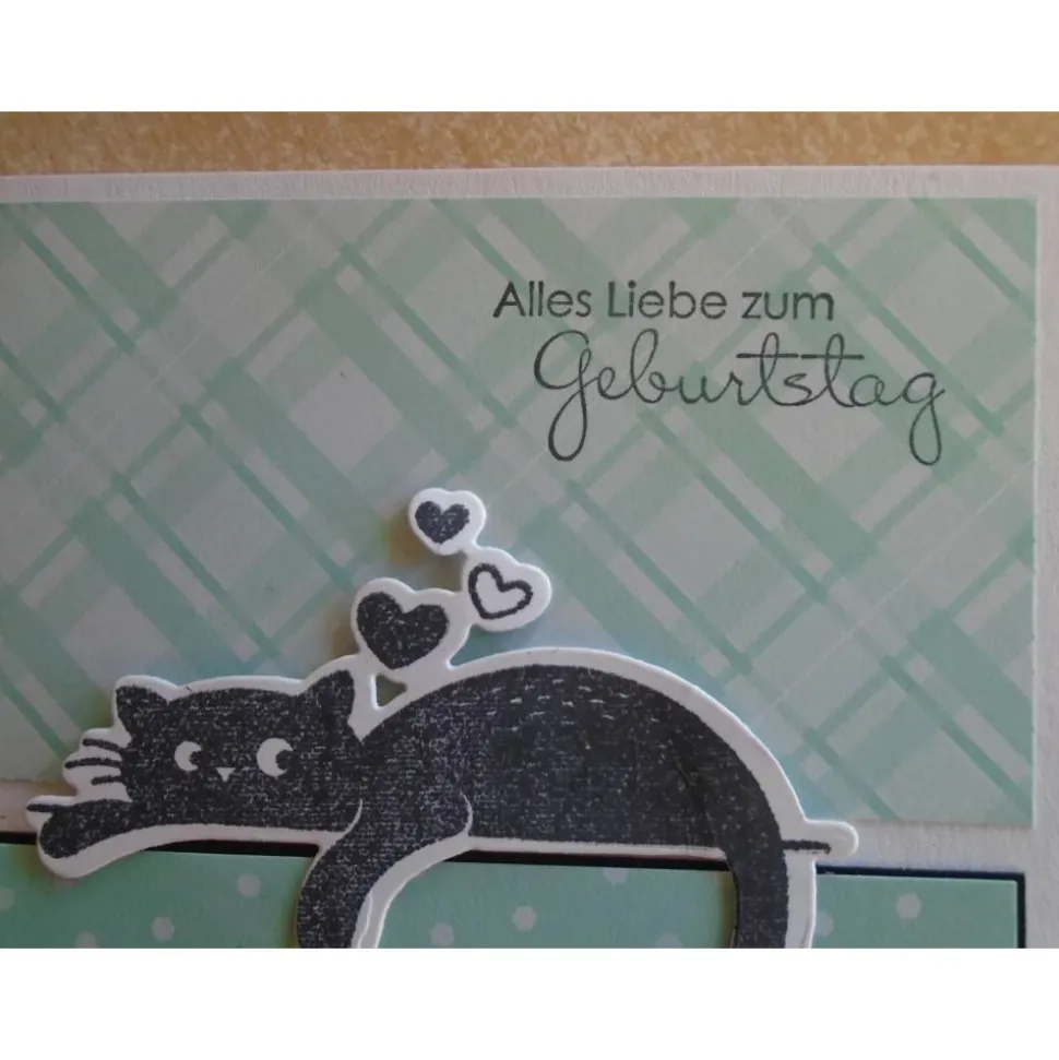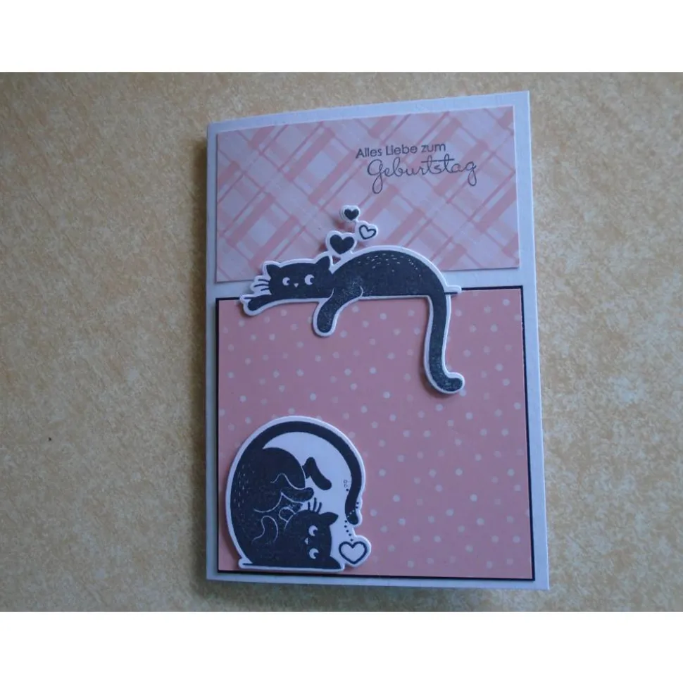 diese Grusskarte Geburtstagskarte wurde gefertigt mit Motive Katze Katzen als Gestanzt und Gestempelt…