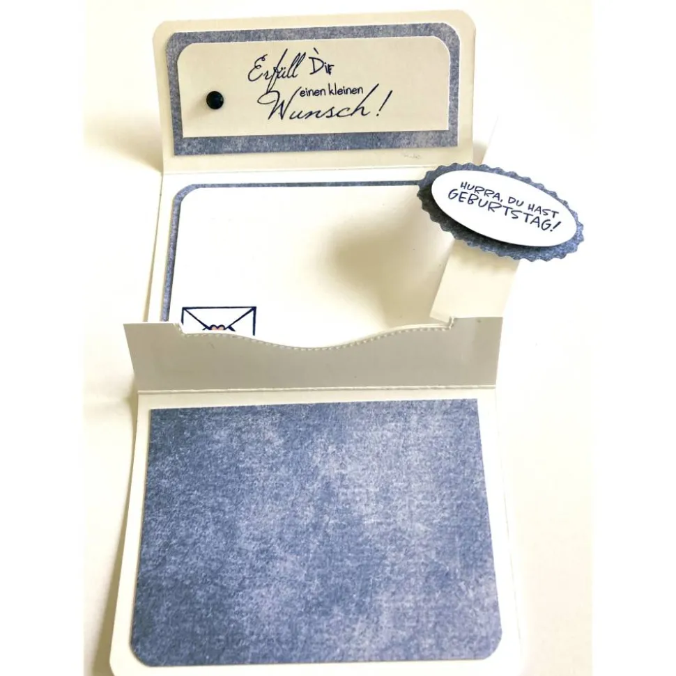 Klappt man die Karte auf, erscheint im Inneren, im oberen Feld der Spruch“ Erfüll dir einen kleinen Wunsch“.
