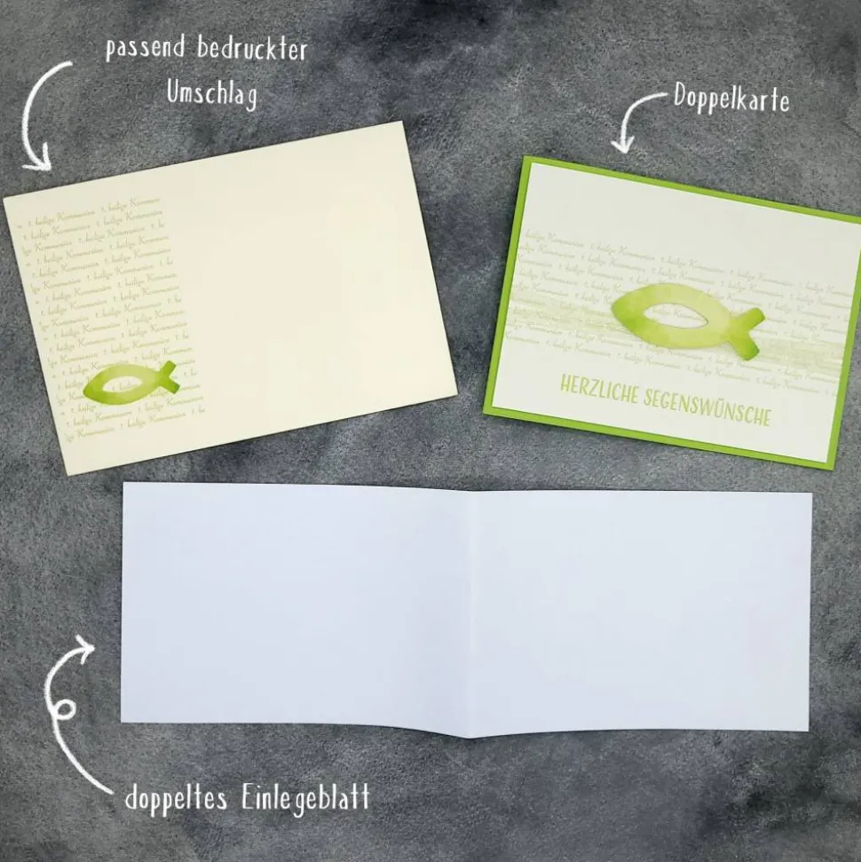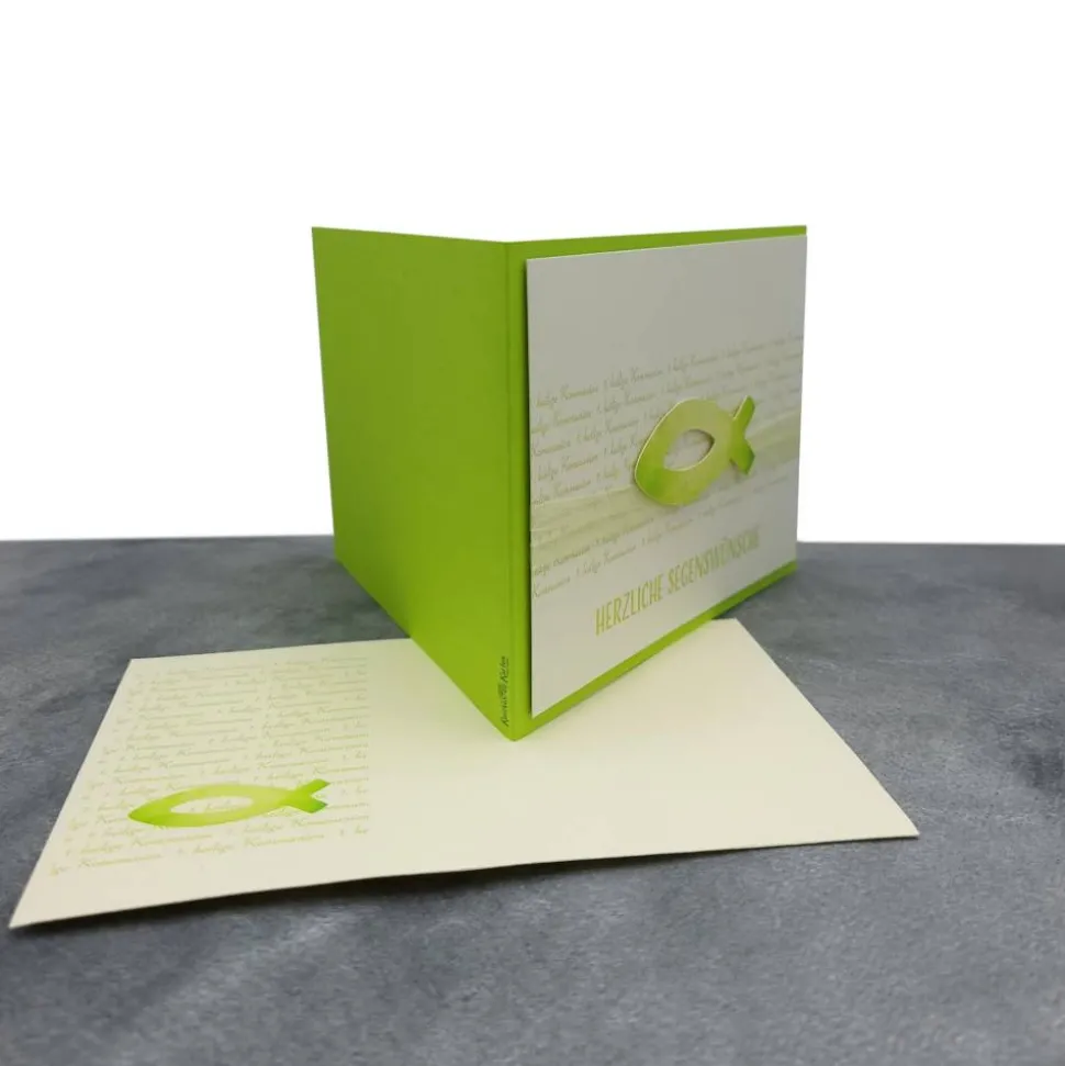 Diese stilvolle Doppelkarte mit Einlegeblatt & Umschlag ist die perfekte Ergänzung zu deinem Geldgeschenk und setzt deine Glückwünsche zu Taufe, Firmung oder Konfirmation stilvoll in Szene. Das Fisch-Design in Maigrün macht die Karte zu einem echten Hingucker und unterstreicht den festlichen Charakter des Anlasses.