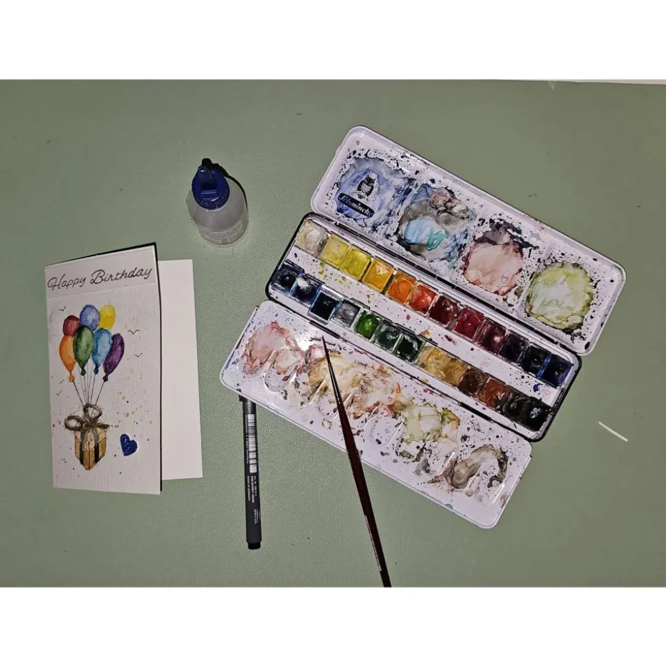 Das Papier ist stets hochwertiges der Firmen Hahnemühle und Saunders. Gelegentlich male ich mit VanGogh, schwarzen Aquarellpapier oder anderen. Immer hat die Grammzahl 300 gr. und gleicht eher einem Aquarell-Karton. Dadurch wellt sich das Blatt nicht und bleibt stabil.
