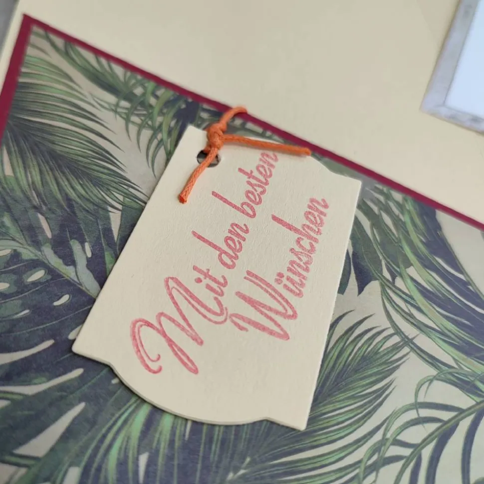 Auf dem zweiten Bild siehst du, dass es ein leeres Fach für den Gutschein oder das Geld gibt und ein Fach, in dem eine Karte steckt, die mit persönlichen Glückwünschen gefüllt werden kann.