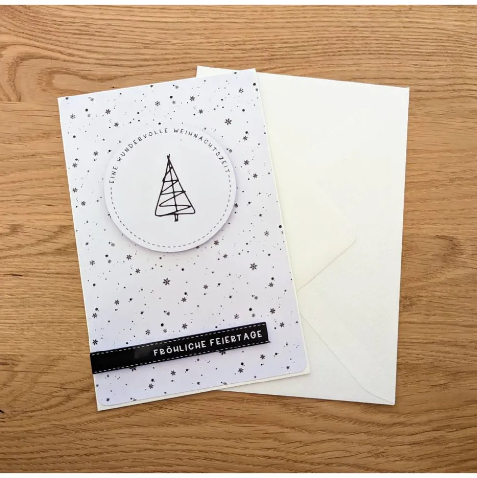 Grundfarbe der Klappkarte und Umschlag: Cremeweiß