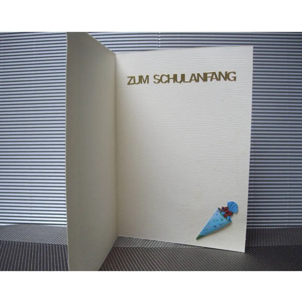 Das Motiv besteht aus einer Tafel, Stiften, einem Schulranzen, Hefte und einem Papierflieger.