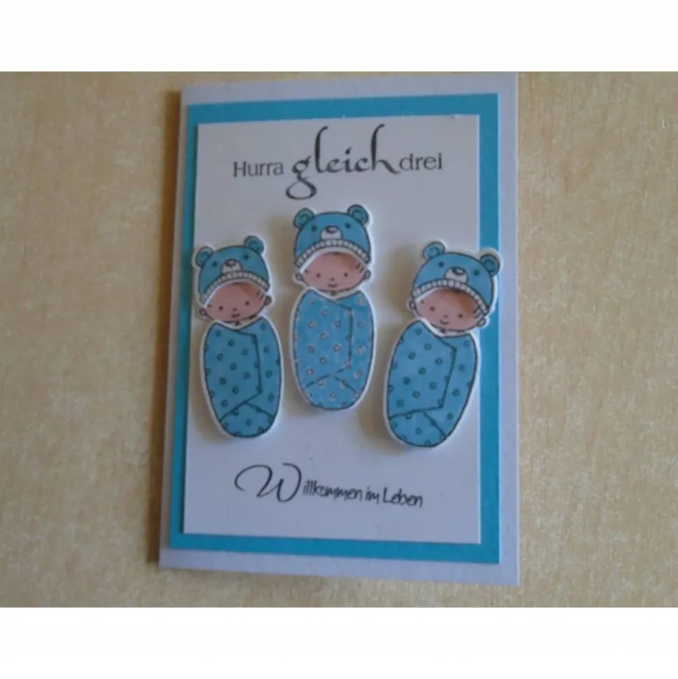 in liebevoller Handarbeit habe ich jede Glückwunschkarte zur Geburt für Drillinge Mädchen und Jungen gearbeitet…daher ist diese Geburtskarte oder Taufkarte ein Unikat..