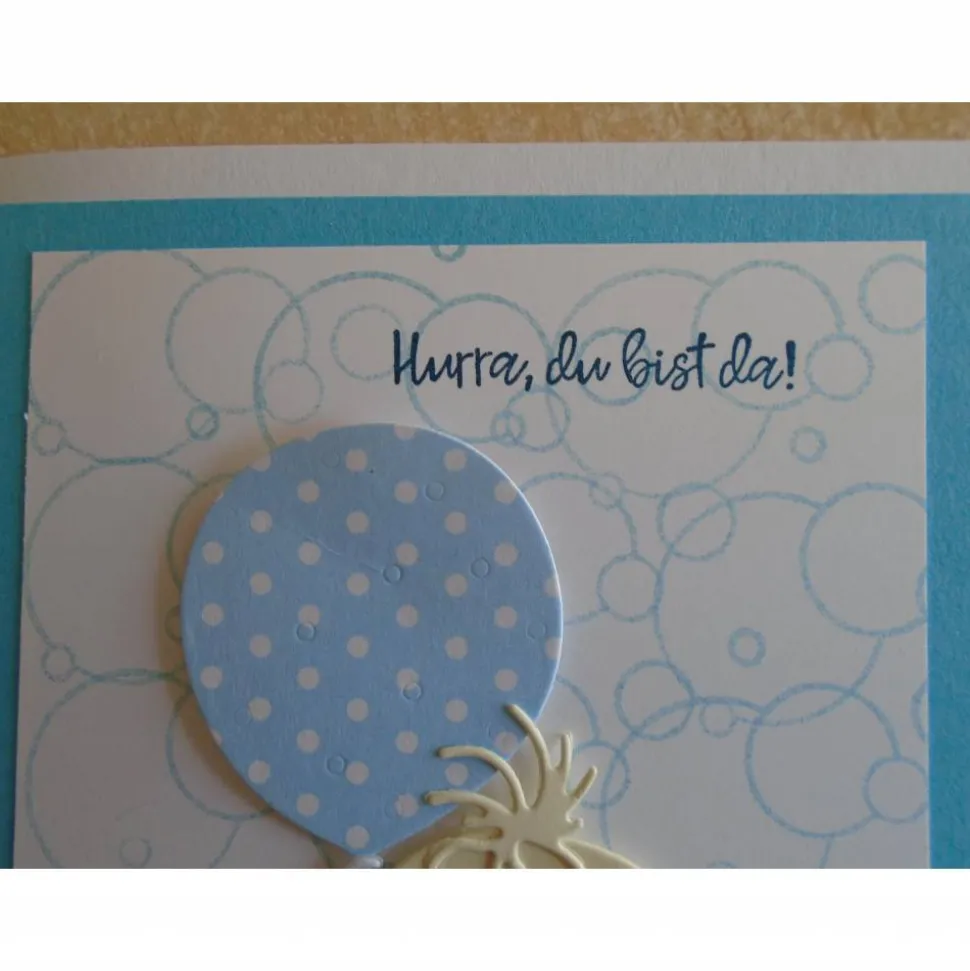 diese Geburtskarte wurde verziert mit…Babymotiv,Stempelfarbe,