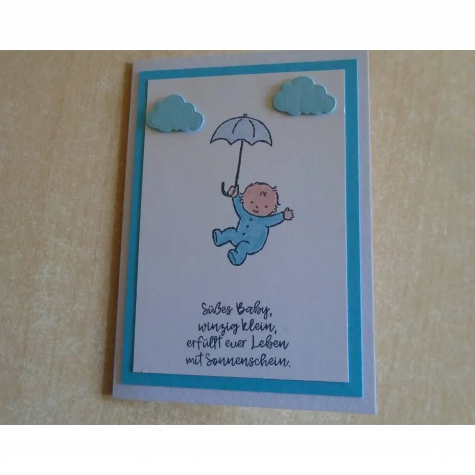 diese Geburtskarte wurde verziert mit…Babymotiv,Stempelfarbe,