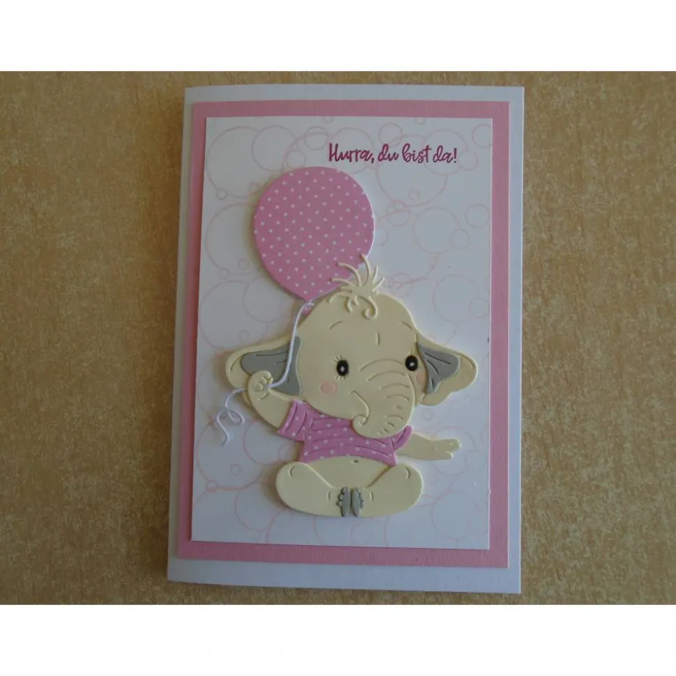 Hier seht ihr eine schöne Glückwunschkarte zur Geburt mit süssen Elefant..