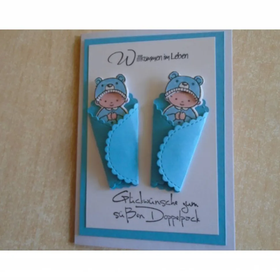 diese Geburtskarte oder Taufkarte ist für Jungen.. diese Glückwunschkarte für Zwillinge Jungen ist gestanzt gestempelt und coloriert