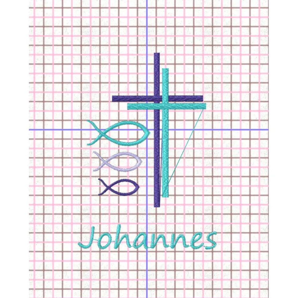 Bestickt ist sie mit zwei Kreuzen und drei Fischen.