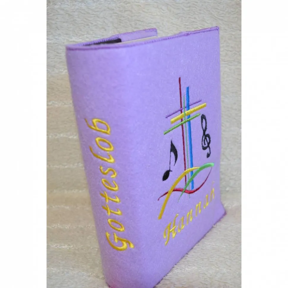 Die Hülle ist aus Filz genäht und bestickt. Optional kann auch ein Täschchen für den Rosenkranz dazu bestellt werden.