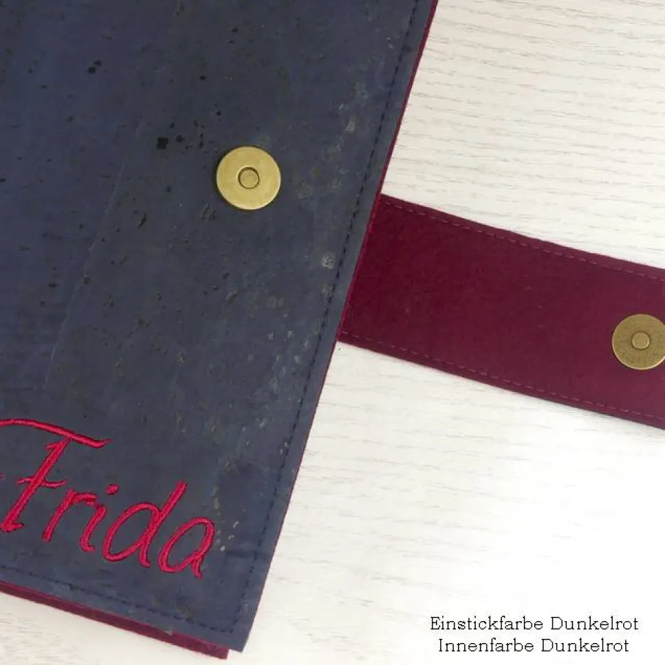 Gestalte deine Hülle ganz individuell: Du kannst sie mit einem Namen oder Datum besticken lassen – wahlweise auf dem Buchrücken, der Vorderseite oder innen im Einschlag. Wähle deine Lieblingsfarbe für Stickerei und Innenfilz.