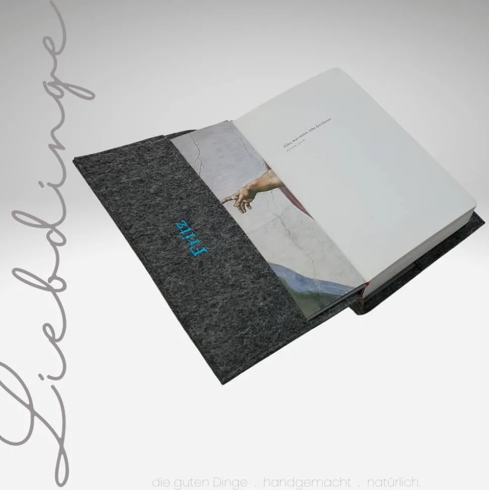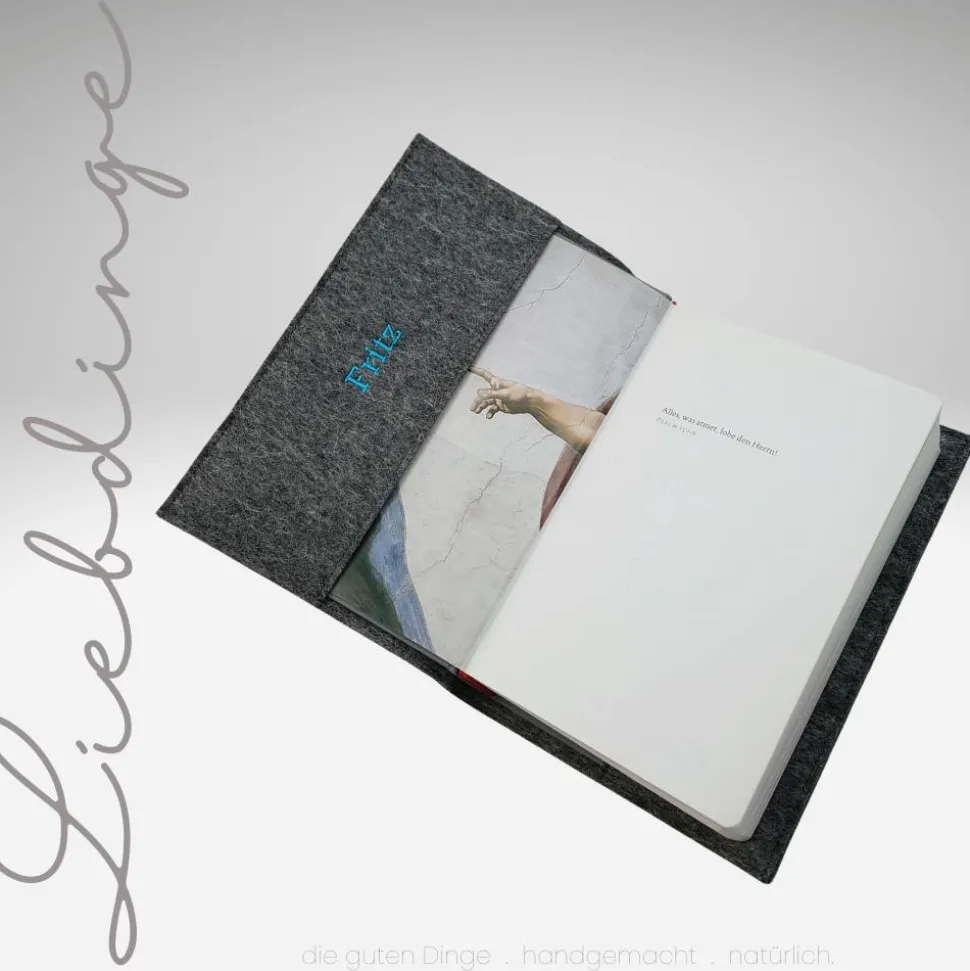 Edel und haltbar bestickt mit einem kleinen Fisch auf dem cover und auf Wunsch mit Deinem Namen.