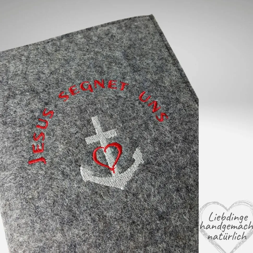Edel und haltbar 2farbig bestickt: Jesus segnet uns. Motiv Glaube Liebe Hoffnung