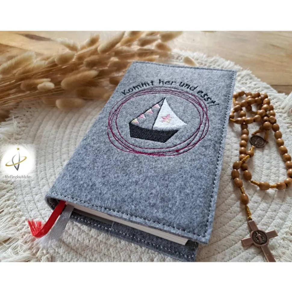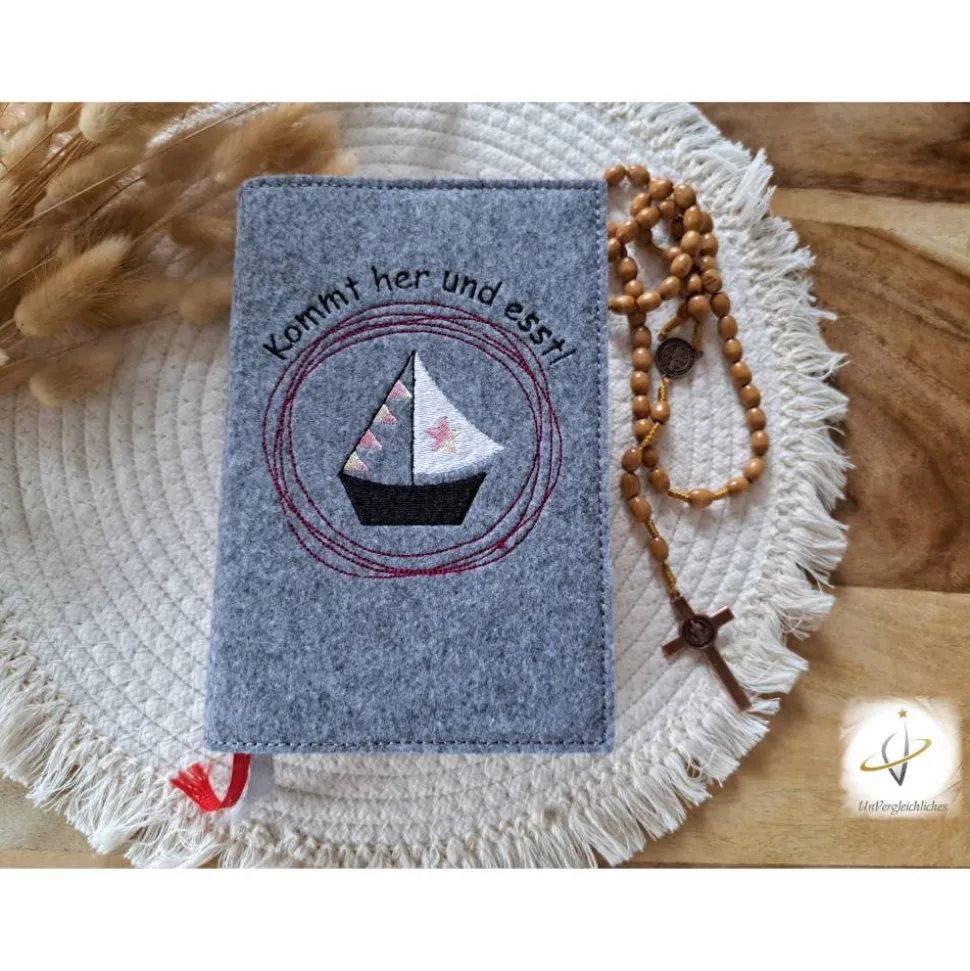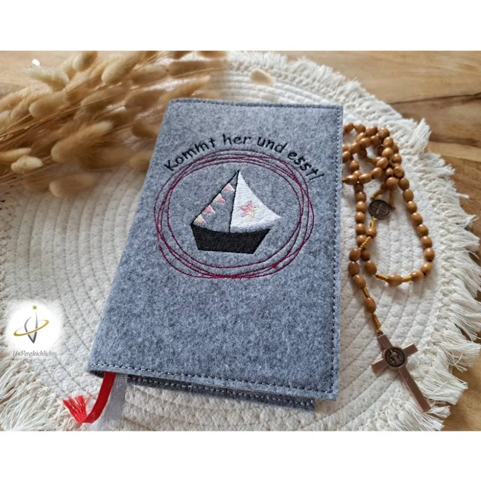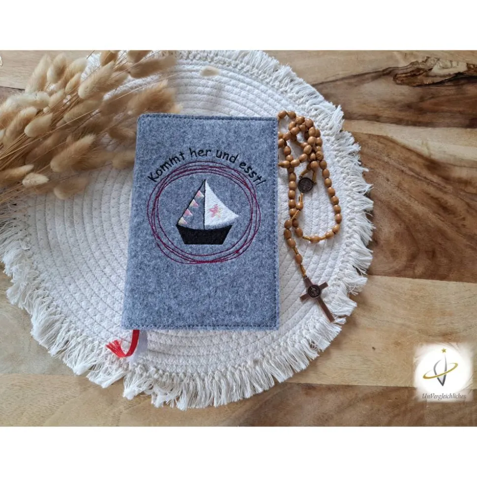 Gotteslobhülle Filz Kommunion 2025 kommt her und esst! personalisierbar Einband Handgemachte Filzhülle Boot