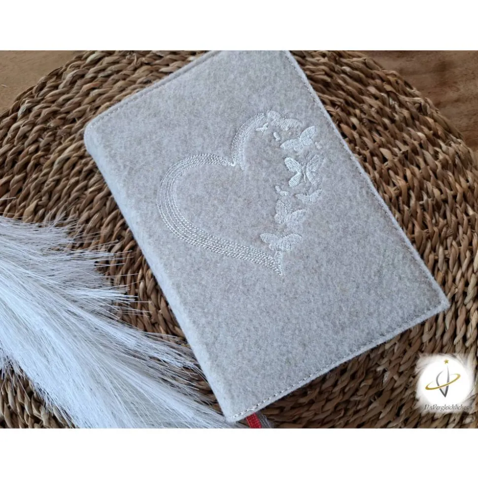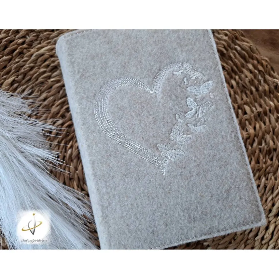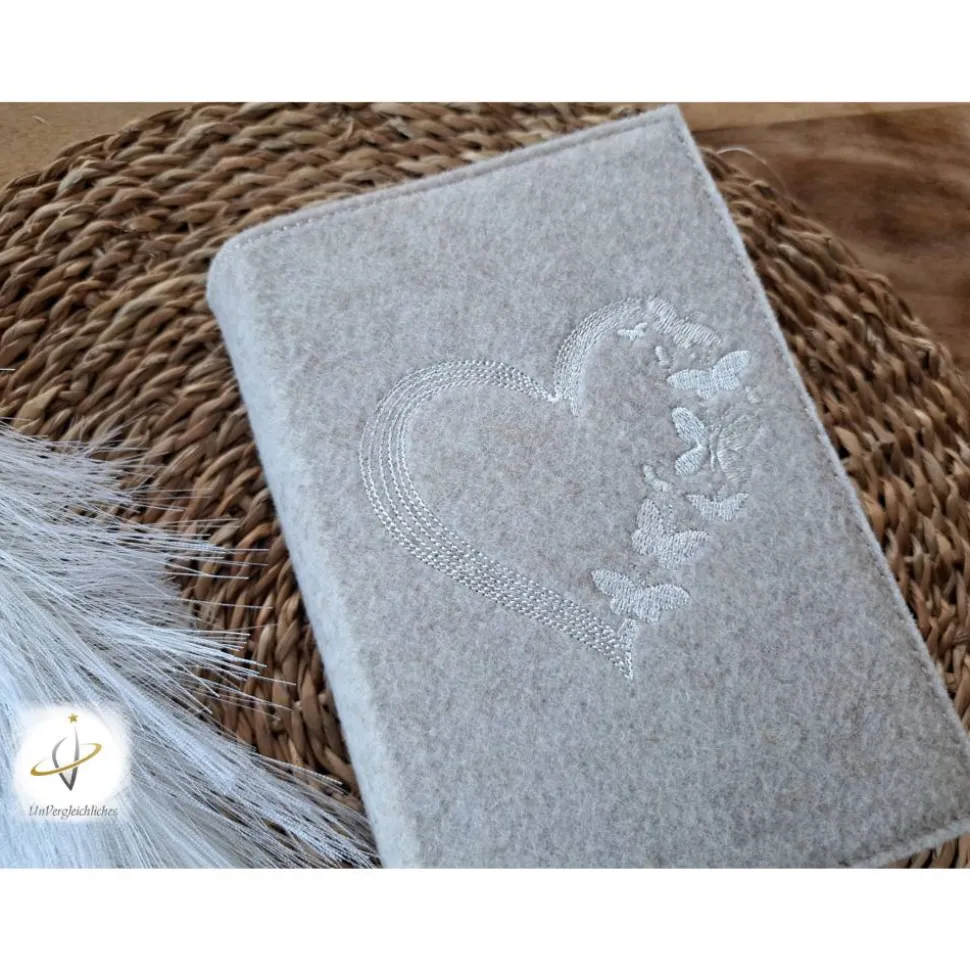 Die Hülle kann individuell mit dem Namen des Kindes und dem Datum der Erstkommunion gestaltet werden, was sie zu einem ganz besonderen Andenken an diesen wichtigen Tag macht. Die Bestickung erfolgt auf der Vorderseite der Hülle und wird mit modernster Technologie präzise und dauerhaft in den Filz eingearbeitet.