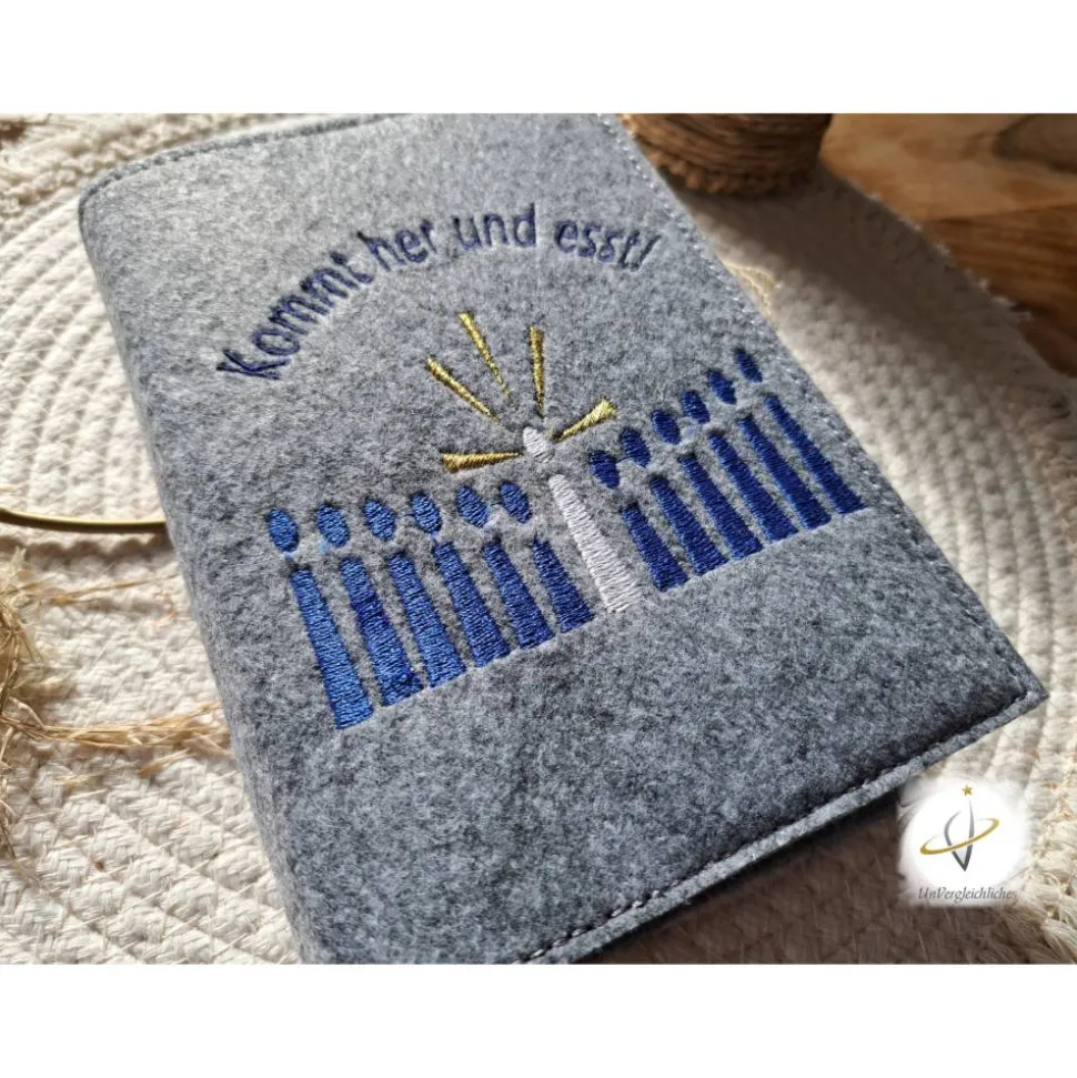 Die Hülle kann individuell mit dem Namen des Kindes und dem Datum der Erstkommunion gestaltet werden, was sie zu einem ganz besonderen Andenken an diesen wichtigen Tag macht. Die Bestickung erfolgt auf der Vorderseite der Hülle und wird mit modernster Technologie präzise und dauerhaft in den Filz eingearbeitet.