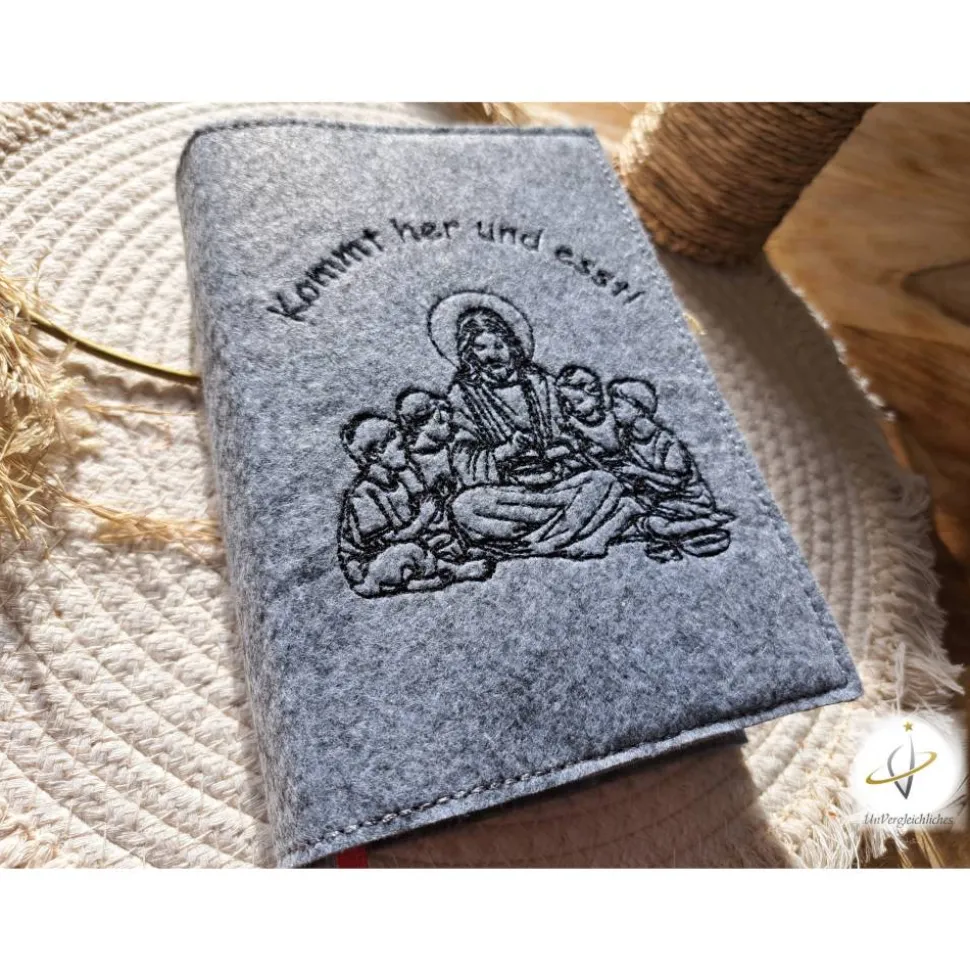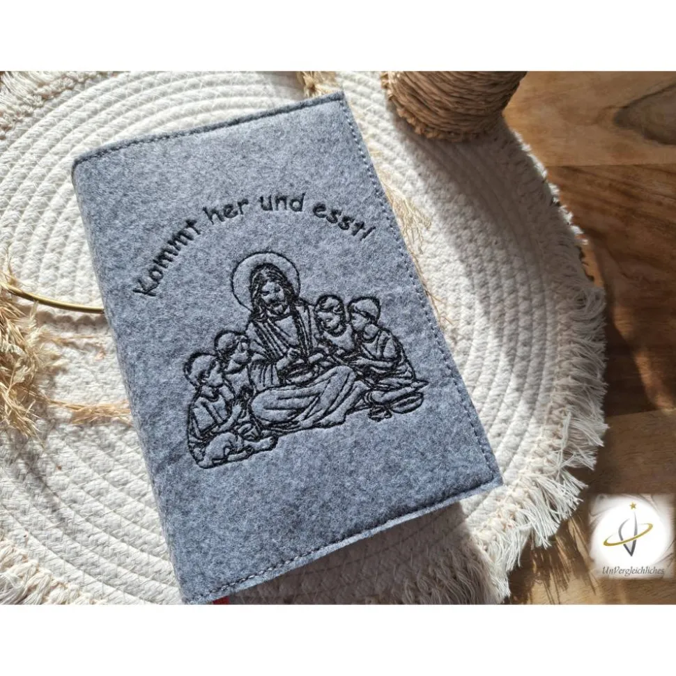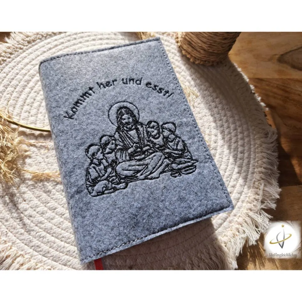 Die Hülle kann individuell mit dem Namen des Kindes und dem Datum der Erstkommunion gestaltet werden, was sie zu einem ganz besonderen Andenken an diesen wichtigen Tag macht. Die Bestickung erfolgt auf der Vorderseite der Hülle und wird mit modernster Technologie präzise und dauerhaft in den Filz eingearbeitet.