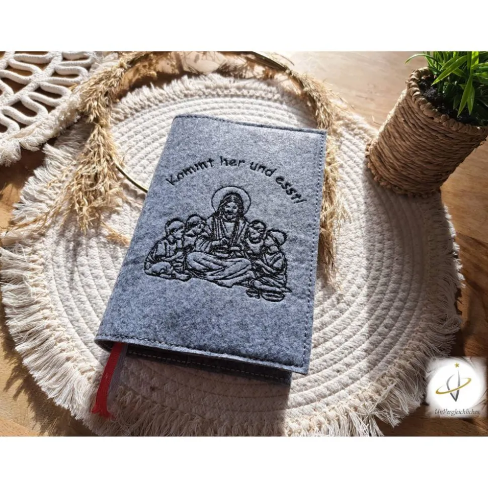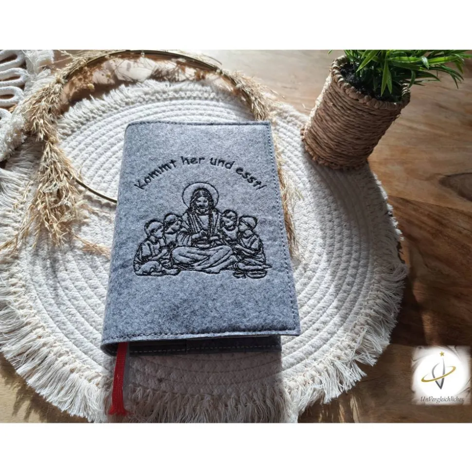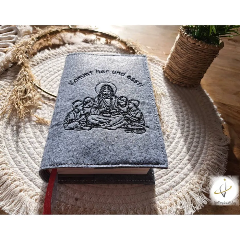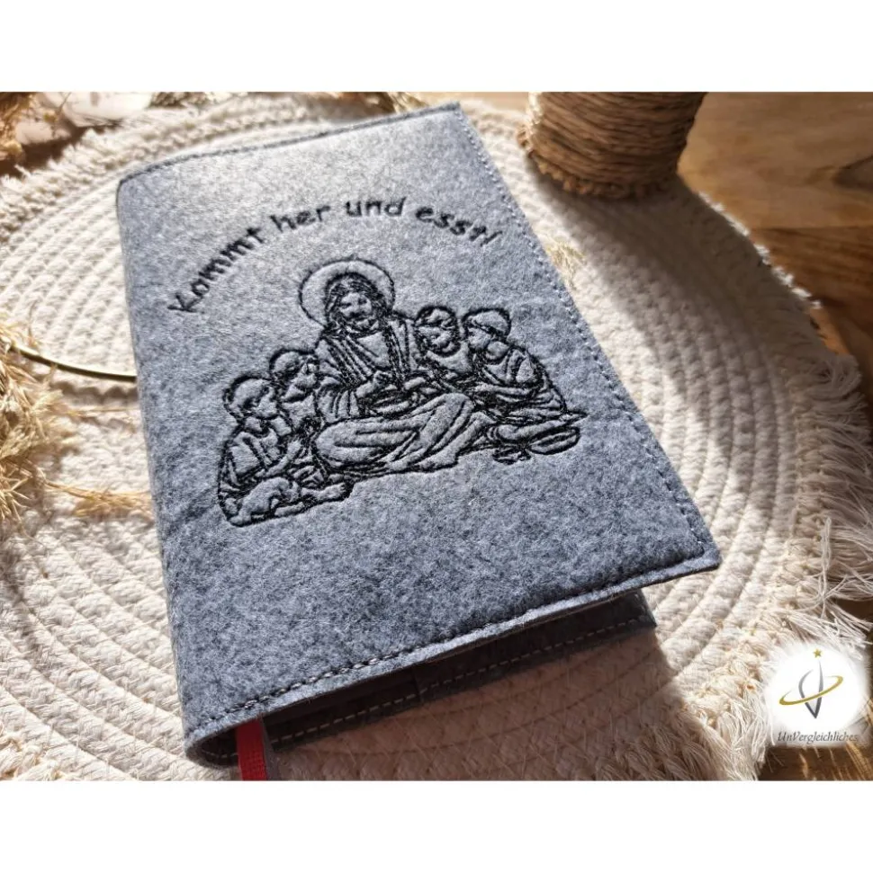 Die Hülle kann individuell mit dem Namen des Kindes und dem Datum der Erstkommunion gestaltet werden, was sie zu einem ganz besonderen Andenken an diesen wichtigen Tag macht. Die Bestickung erfolgt auf der Vorderseite der Hülle und wird mit modernster Technologie präzise und dauerhaft in den Filz eingearbeitet.