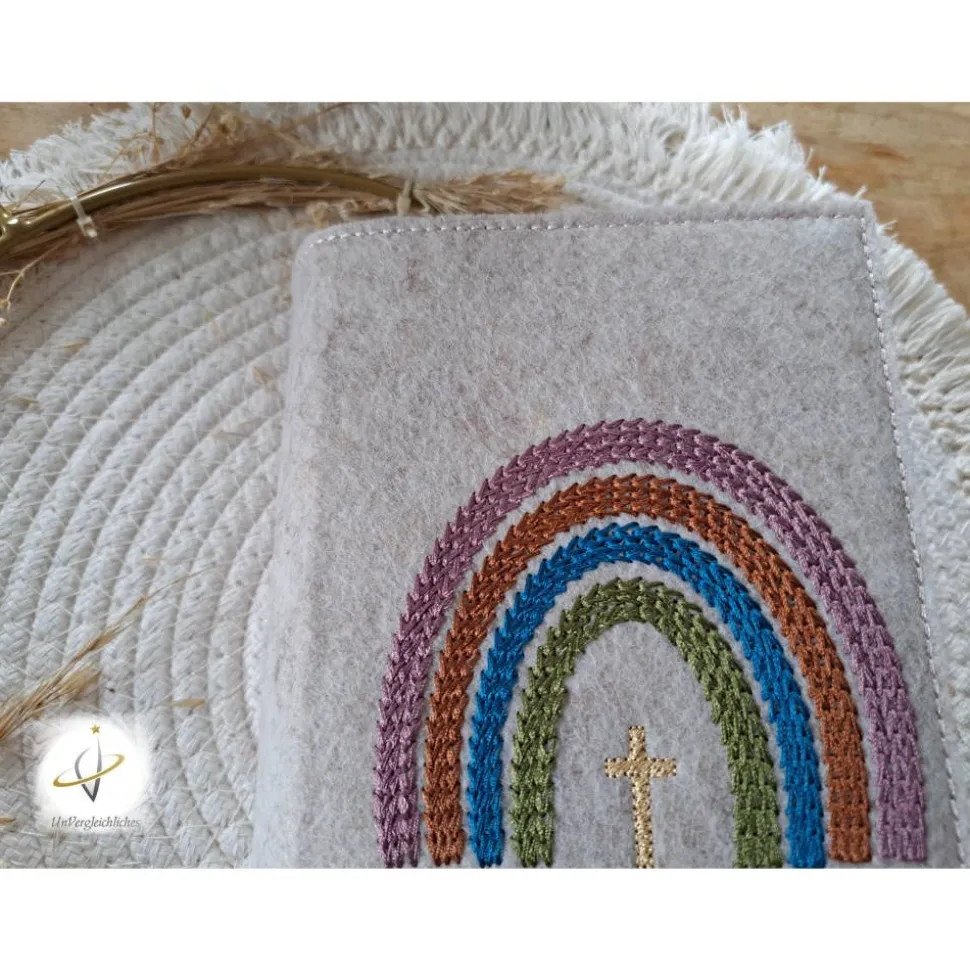Die Hülle kann individuell mit dem Namen des Kindes und dem Datum der Erstkommunion gestaltet werden, was sie zu einem ganz besonderen Andenken an diesen wichtigen Tag macht. Die Bestickung erfolgt auf der Vorderseite der Hülle und wird mit modernster Technologie präzise und dauerhaft in den Filz eingearbeitet.
