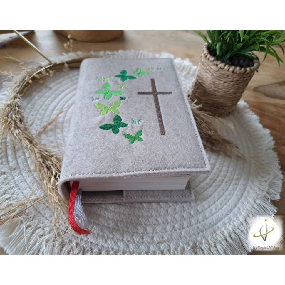 Die Filzhülle ist robust und langlebig und schützt das Gotteslob vor Schmutz und Beschädigungen. Dank des praktischen Designs ist das Gotteslob einfach einzulegen und herauszunehmen, und die Hülle kann auch während des Gottesdienstes verwendet werden.