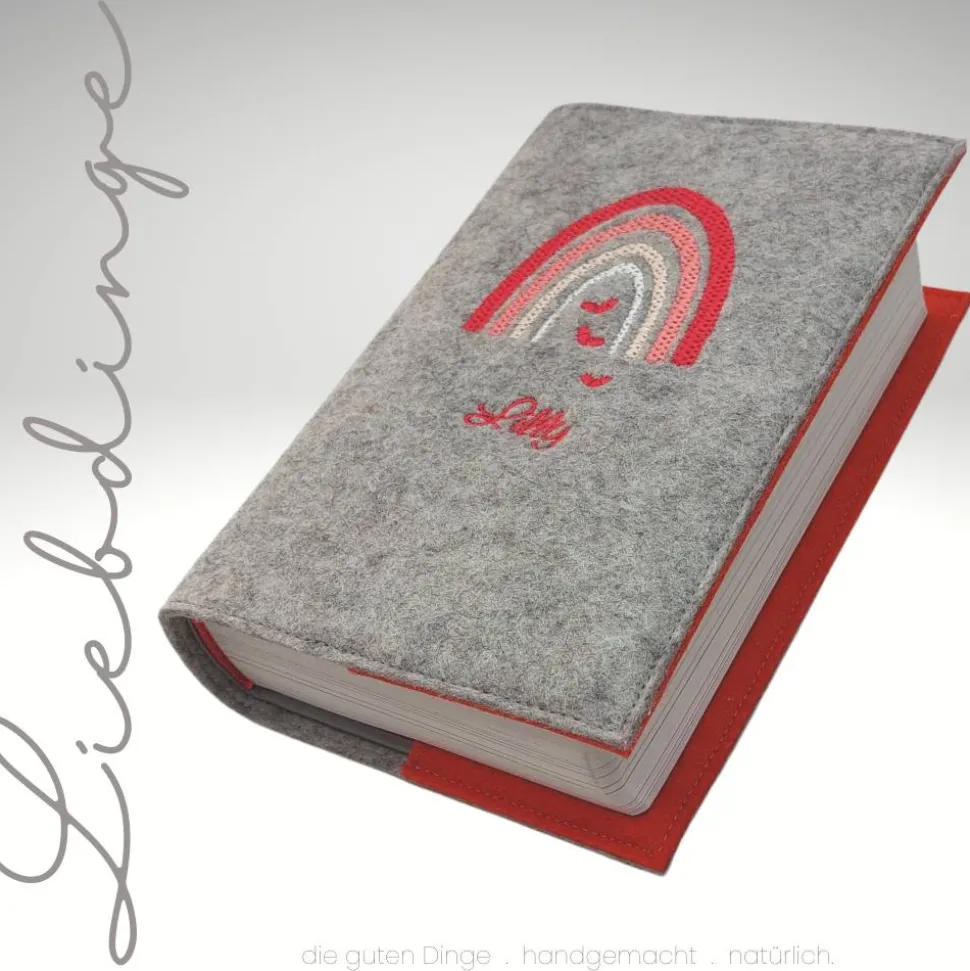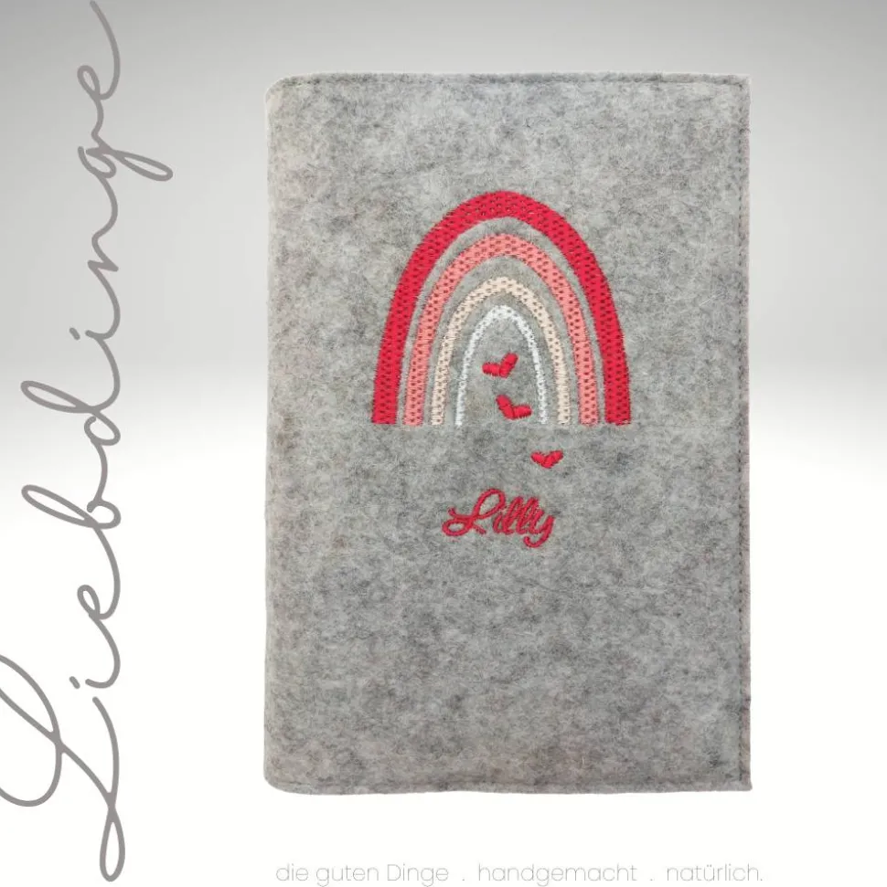 Edel und haltbar bestickt mit einem Regenbogen, Herzen und Name