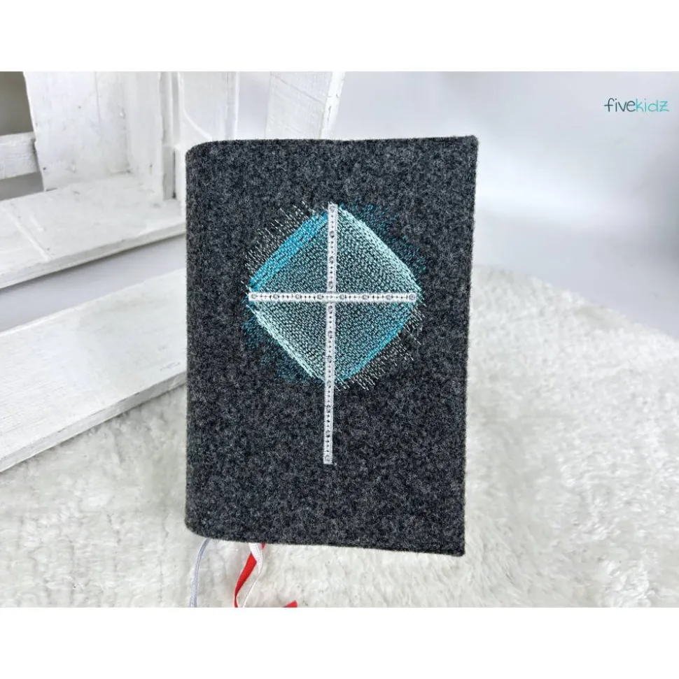 Dieser Einband ist aus hochwertigem Wollfilz gefertigt. Es ist bestickt mit diesem wunderschönen kirchlichen Motiv. Die Farben der Bestickung können Sie auch gerne frei wählen. Hierzu bitte einfach eine Nachricht oder einen Kommentar zum Kauf dazuschreiben. Ansonsten wird es wie in der Abbildung gefertigt. Das verwendete Filz ist hier in einem melierten anthrazit. Bestickt in Silber und Petrol.