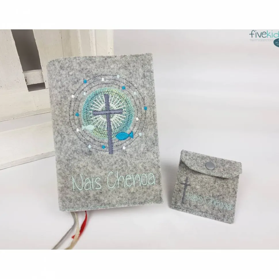 Dieser Einband ist aus hochwertigem Wollfilz gefertigt. Es ist bestickt mit diesem wunderschönen kirchlichen Motiv. Die Farben der Bestickung können Sie auch gerne frei wählen. Hierzu bitte einfach eine Nachricht oder einen Kommentar zum Kauf dazuschreiben. Ansonsten wird es wie in der Abbildung gefertigt. Das verwendete Filz ist hier in einem melierten grau. Bestickt in Mint- Türkis- und Silbertönen.