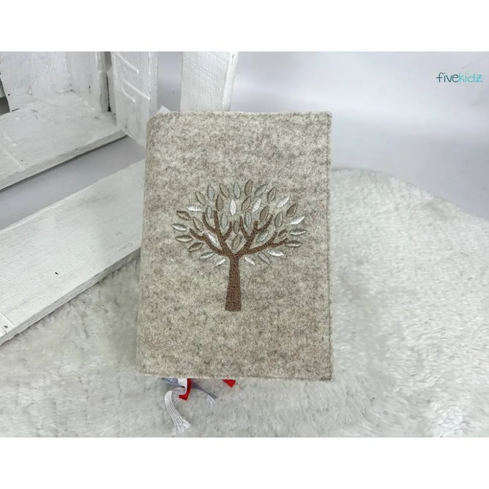 Dieser Einband ist aus hochwertigem Wollfilz gefertigt. Es ist bestickt mit diesem wunderschönen kirchlichen Motiv. Die Farben der Bestickung können Sie auch gerne frei wählen. Hierzu bitte einfach eine Nachricht oder einen Kommentar zum Kauf dazuschreiben. Ansonsten wird es wie in der Abbildung gefertigt. Das verwendete Filz ist hier in einem melierten hellem beige. Bestickt in Creme, Beige und Braun.