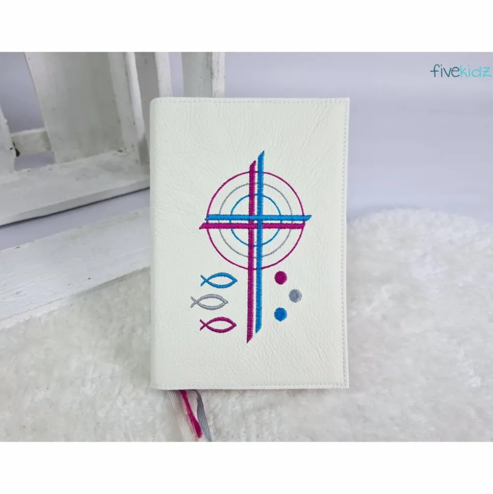 Dieser Einband ist aus hochwertigem Echtleder gefertigt. Es ist bestickt mit diesem wunderschönen kirchlichen Motiv. Die Farben der Bestickung können Sie auch gerne frei wählen. Hierzu bitte einfach eine Nachricht oder einen Kommentar zum Kauf dazuschreiben. Ansonsten wird es wie in der Abbildung gefertigt. Das verwendete Leder ist hier in einem altweiß. Bestickt in Pink-Beere-, Silber- und Türkistönen.