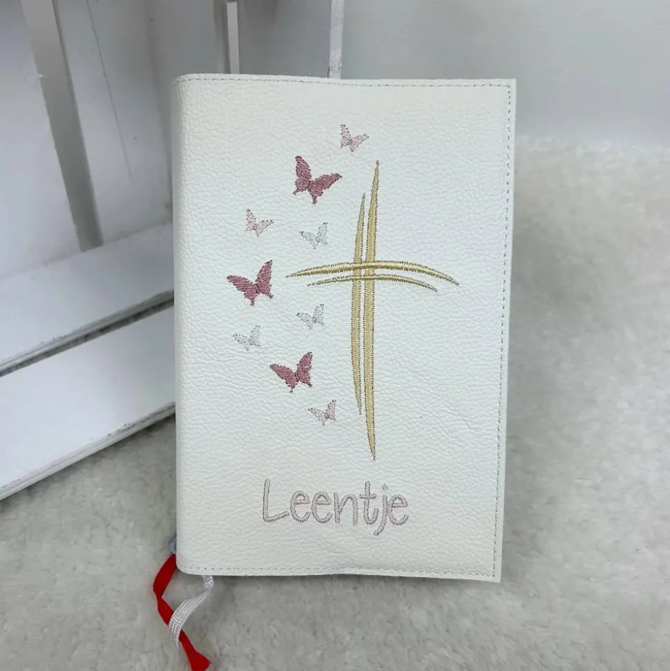 Dieser Einband ist aus echtem Rindsleder gefertigt. Es ist bestickt mit diesem wunderschönen kirchlichen Motiv. Die Farben der Bestickung können Sie auch gerne frei wählen. Hierzu bitte einfach eine Nachricht oder einen Kommentar zum Kauf dazuschreiben. Ansonsten wird es wie in der Abbildung gefertigt. Das verwendete Leder ist hier in einem altweiß. Bestickt in Altrosa, Rosa, Creme und Gold.