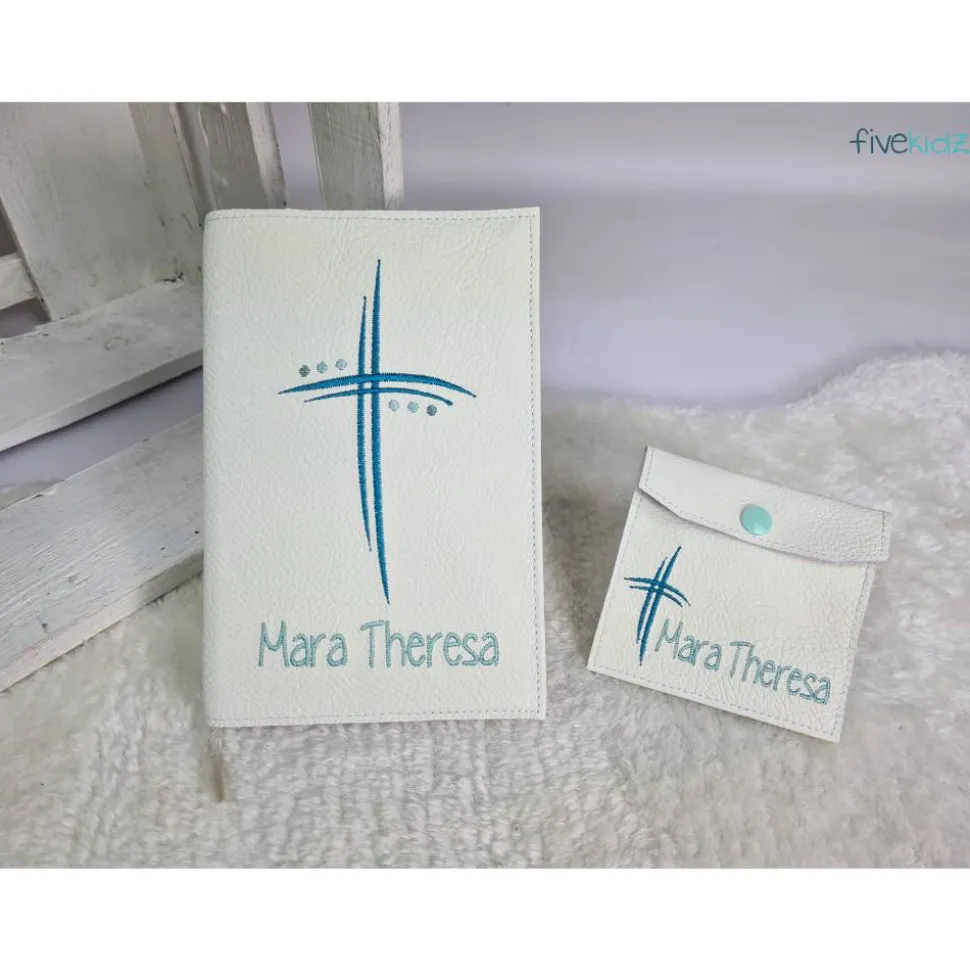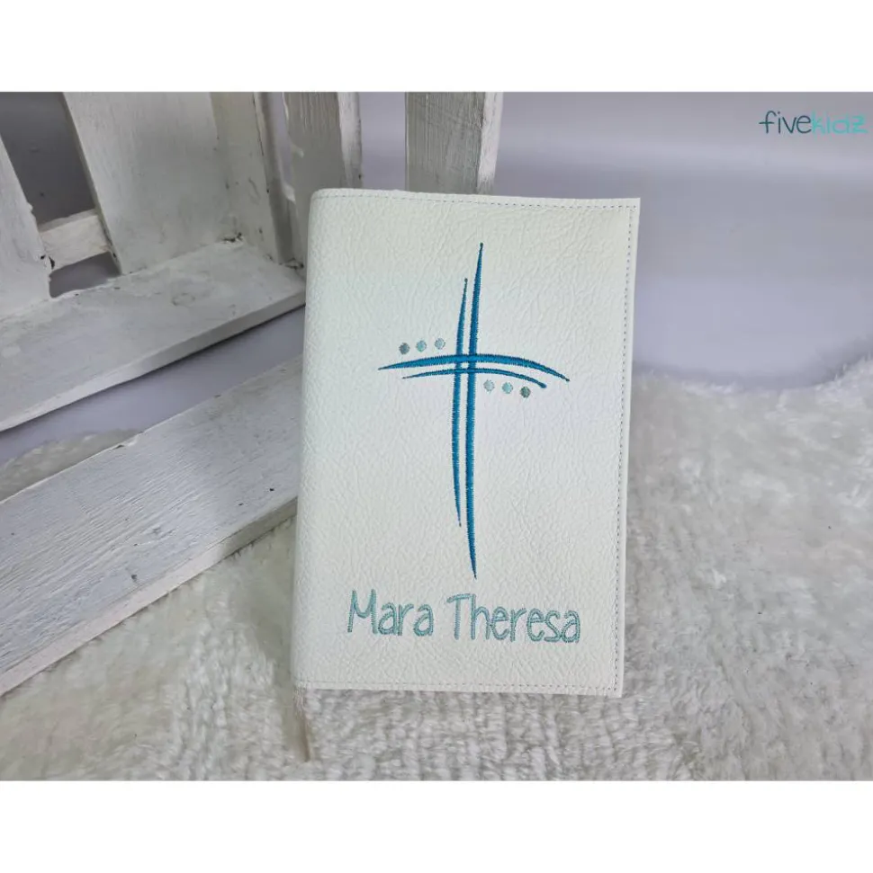 Dieser Einband ist aus hochwertigem Echtleder gefertigt. Es ist bestickt mit diesem wunderschönen kirchlichen Motiv. Die Farben der Bestickung können Sie auch gerne frei wählen. Hierzu bitte einfach eine Nachricht oder einen Kommentar zum Kauf dazuschreiben. Ansonsten wird es wie in der Abbildung gefertigt. Das verwendete Leder ist hier in einem altweiß. Bestickt in Petrol (Kreuz) und Petrol-, Minttönen.