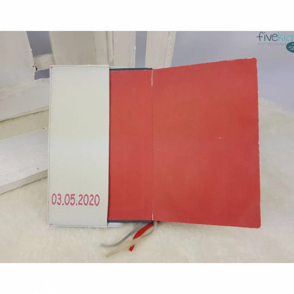 Dieser Einband ist aus hochwertigem Echtleder gefertigt. Es ist bestickt mit diesem wunderschönen kirchlichen Motiv. Die Farben der Bestickung können Sie auch gerne frei wählen. Hierzu bitte einfach eine Nachricht oder einen Kommentar zum Kauf dazuschreiben. Ansonsten wird es wie in der Abbildung gefertigt. Das verwendete Leder ist hier in einem altweiß. Bestickt in Rosa- und Goldtönen.