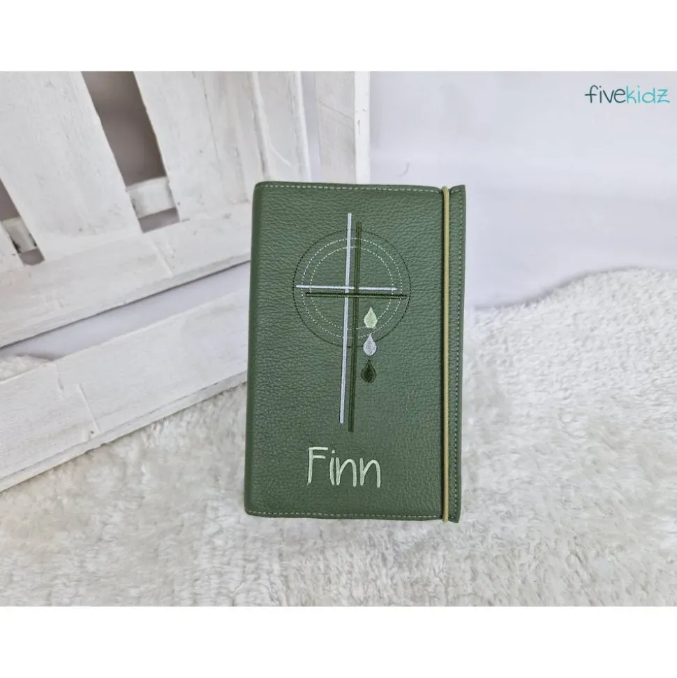 Dieser Einband ist aus hochwertigem Echtleder gefertigt. Es ist bestickt mit diesem wunderschönen kirchlichen Motiv. Die Farben der Bestickung können Sie auch gerne frei wählen. Hierzu bitte einfach eine Nachricht oder einen Kommentar zum Kauf dazuschreiben. Ansonsten wird es wie in der Abbildung gefertigt. Das verwendete Leder ist hier in einem Grünton. Bestickt in Grün- und Silbertönen.