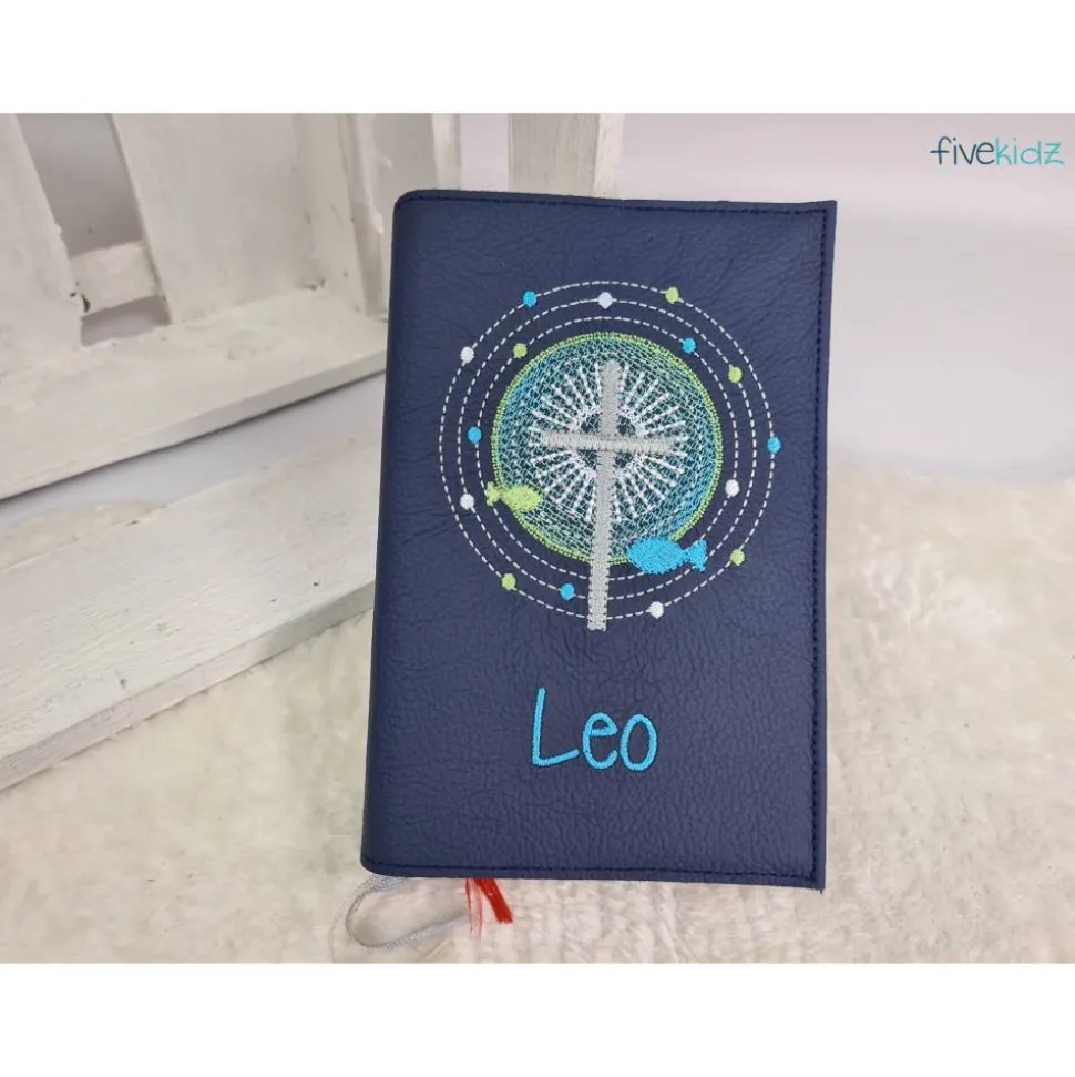 Dieser Einband ist aus hochwertigem Echtleder gefertigt. Es ist bestickt mit diesem wunderschönen kirchlichen Motiv. Die Farben der Bestickung können Sie auch gerne frei wählen. Hierzu bitte einfach eine Nachricht oder einen Kommentar zum Kauf dazuschreiben. Ansonsten wird es wie in der Abbildung gefertigt. Das verwendete Leder ist hier in einem dunklem blau. Bestickt in türkis, grün und silber.