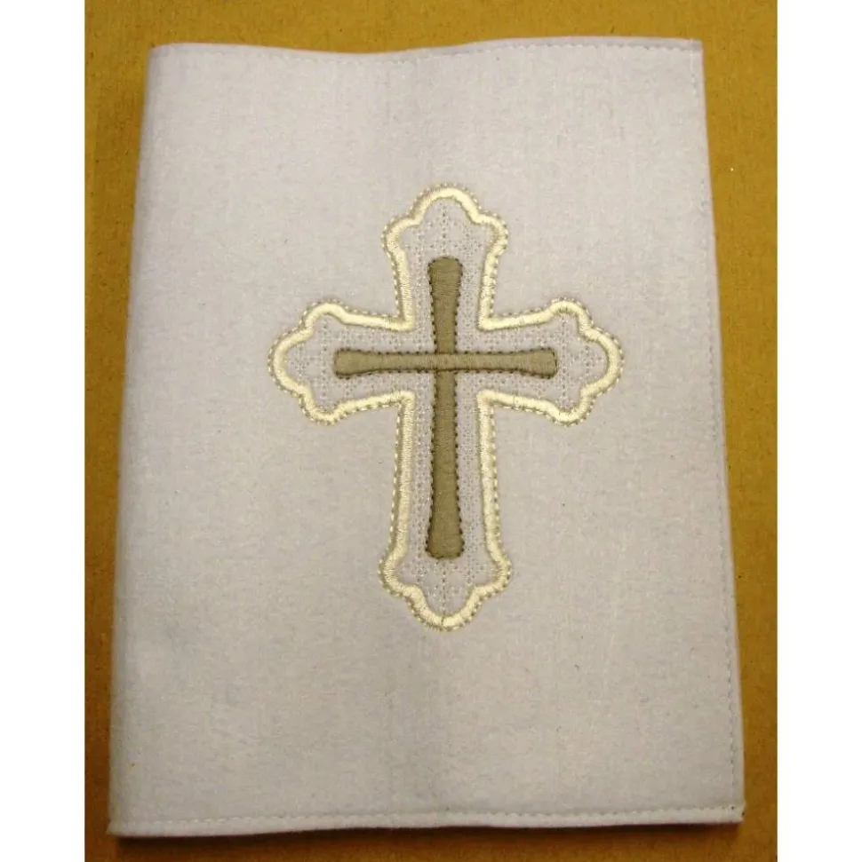 Liebevolle Handarbeit Gotteslobhülle, Einband – handgefertigt aus Filz 3 mm stark weiss beige mit grau Kreuz-