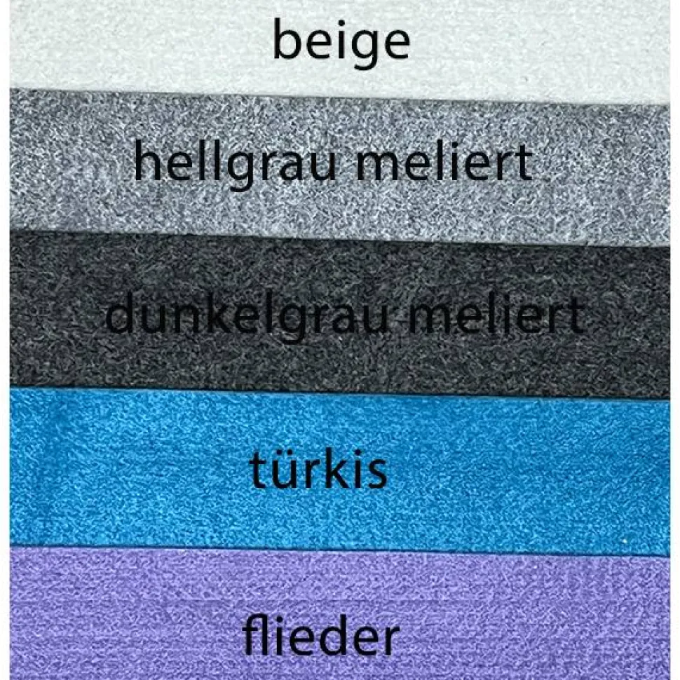 Der Filz besteht aus 100% Polyester und hat die Optik & Haptik von Wollfilz, ist aber stabiler und robuster.