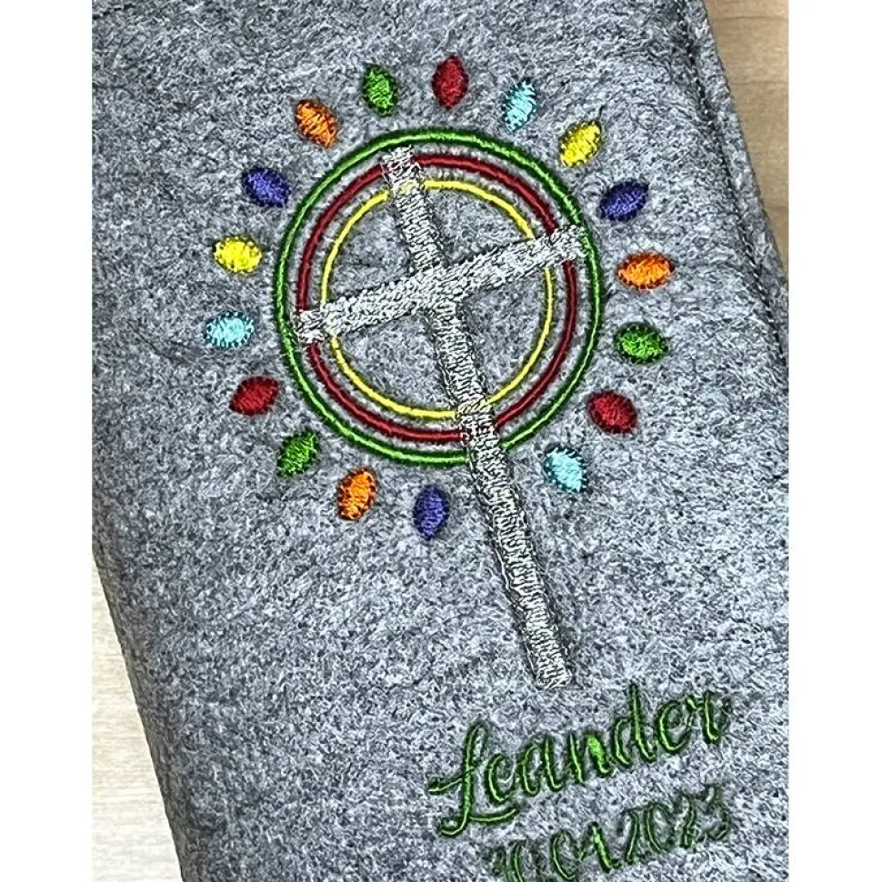 Auf Wunsch kann gerne der Name und auch das Datum mit eingestickt werden, einfach unter Optionen auswählen. Es stehen verschiedene Filzfarben zur Auswahl, bitte die Farbe bei der Personalisierung mitangeben.