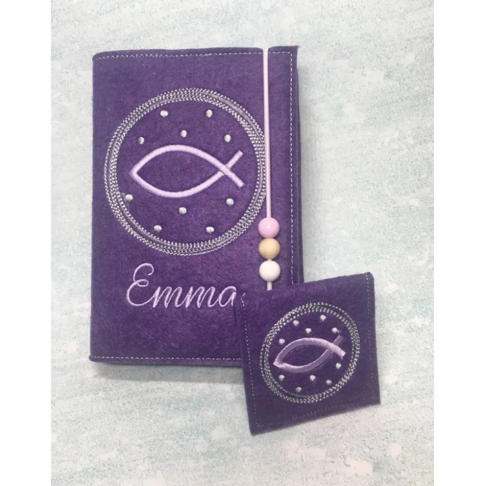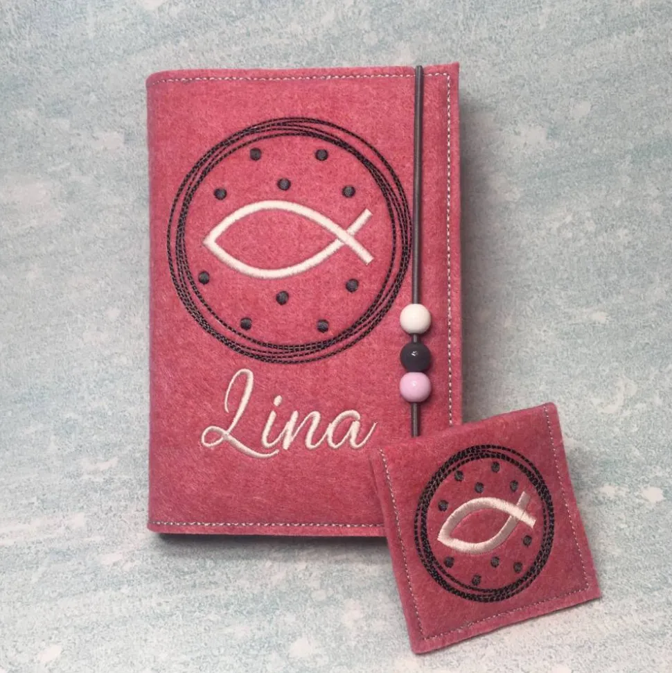 Gotteslobhülle + Rosenkranztasche Fisch im Kreis Hülle Geschenk Kommunion Set Firmung Geschenkidee personalisiert