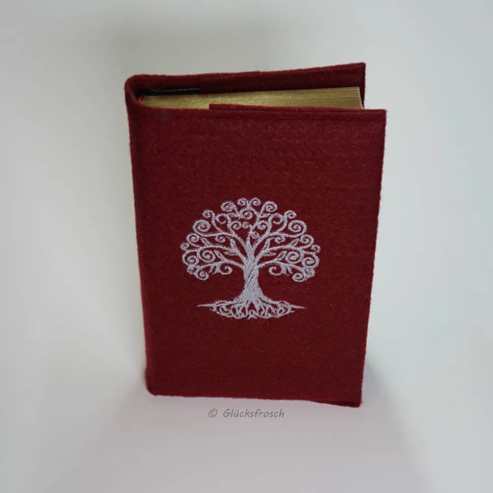 Farbe: weinroter Filz, Stickgarn weiß