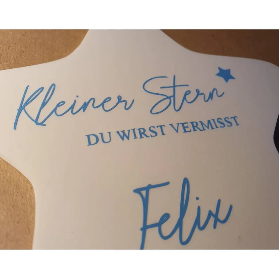 Diese liebevolle Grabdekoration ist speziell für Kindergräber gestaltet und eine wetterfeste Erinnerung an ein Sternenkind. Der Stern mit Namen und kleinen Sternchen bietet eine persönliche Möglichkeit, das Grab eines geliebten Kindes oder eines Sternenkinds zu gestalten. Mit viel Sorgfalt gefertigt, bringt diese Grabdeko Trost und eine besondere Verbindung an den Gedenkort. Der ist ist 13cm groß.