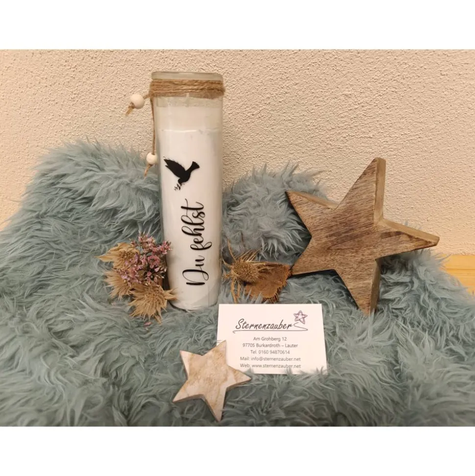 Grabkerze aus Glas – Du fehlst
