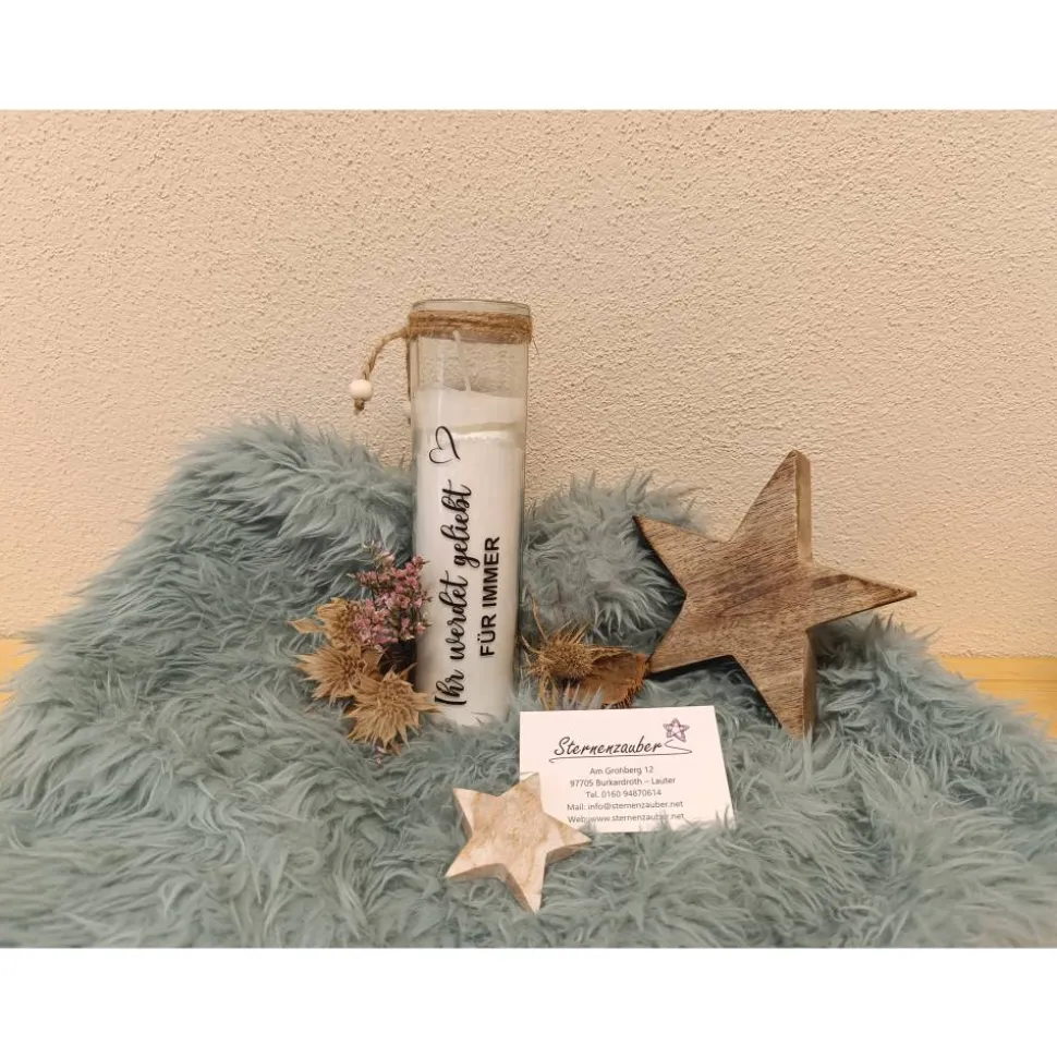 Grabkerze aus Glas – Ihr werdet geliebt. Für immer.
