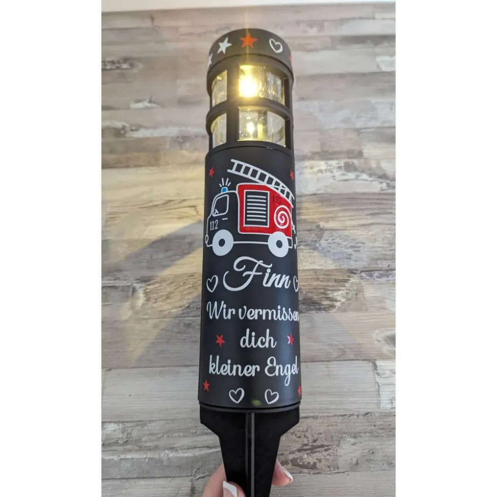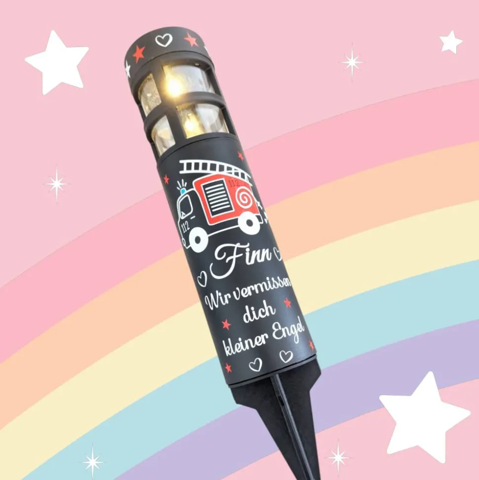 Diese besondere Grableuchte für Sternenkinder/ Kinder bringt Licht und Wärme an den Ort der stillen Erinnerung. Das süße Feuerwehrauto-Motiv ist ein Symbol der Fürsorge und Liebe, das speziell für Sternenkinder und ihre Familien gestaltet wurde.