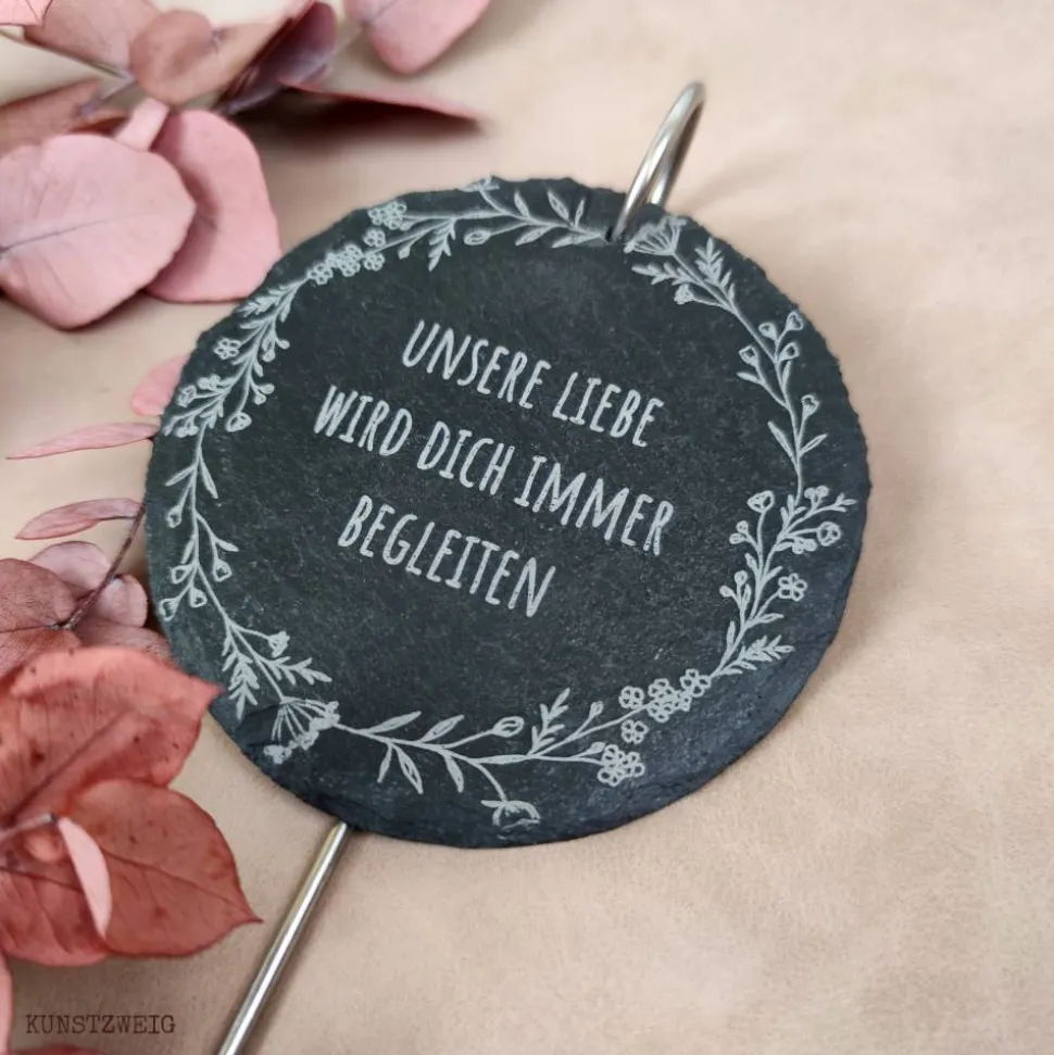 Für weiteren -auch personalisierbaren- Grabschmuck aus Schiefer oder Gedenktafeln aus Holz schaue gerne in meinem Shop vorbei.
