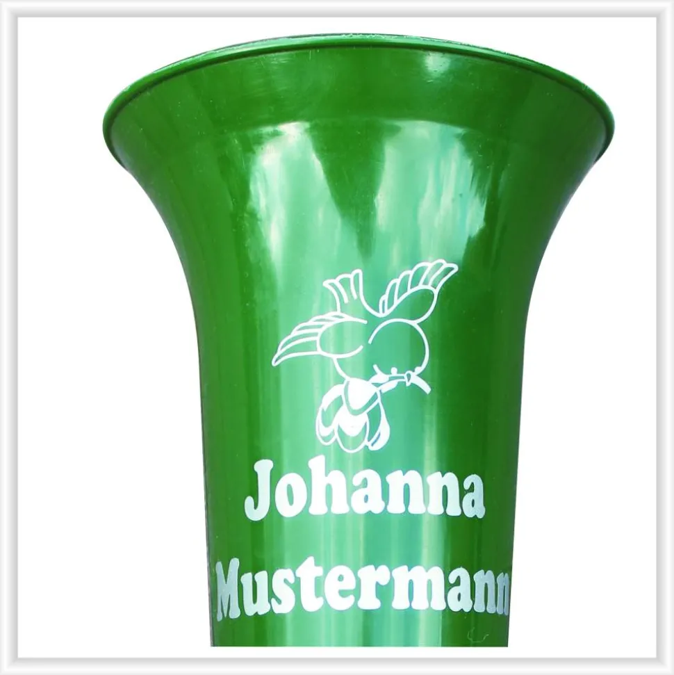 Wir bieten euch hier eine etwa 32 cm hohe Grabvase bzw. Friedhofsvase mit Vogelmotiv und persönlicher Beschriftung (Vor- und Nachname) an. Der aufgebrachte Name und das Rosenmotiv auf der Grabvase lässt sie edler erscheinen und verringert das Risiko, unbefugt ausgeliehen oder gar gestohlen zu werden.