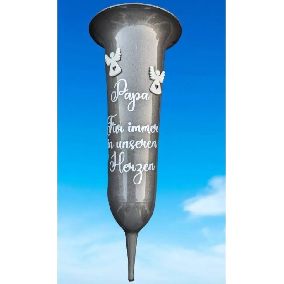 Möchten Sie einen anderen Text als ( Für immer in unseren Herzen) bestellen Sie diese Grabvase mit Ihren Wunschtext (Maximal 40 Zeichen). Bedenken Sie umso mehr Text umso kleiner die Schrift.