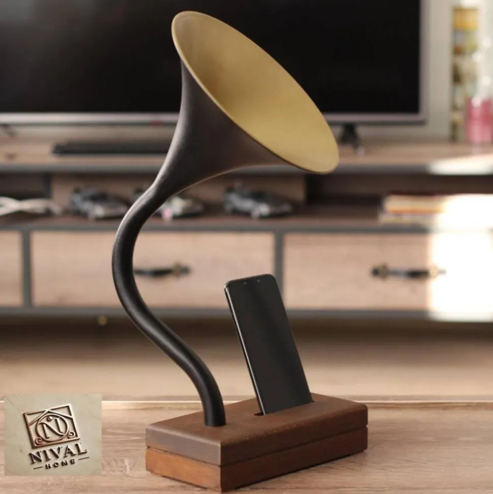 Unsere handgefertigten Grammophone sind ein ganz besonderer Hingucker – ideal platziert auf einem Regal, Schreibtisch oder Sideboard.