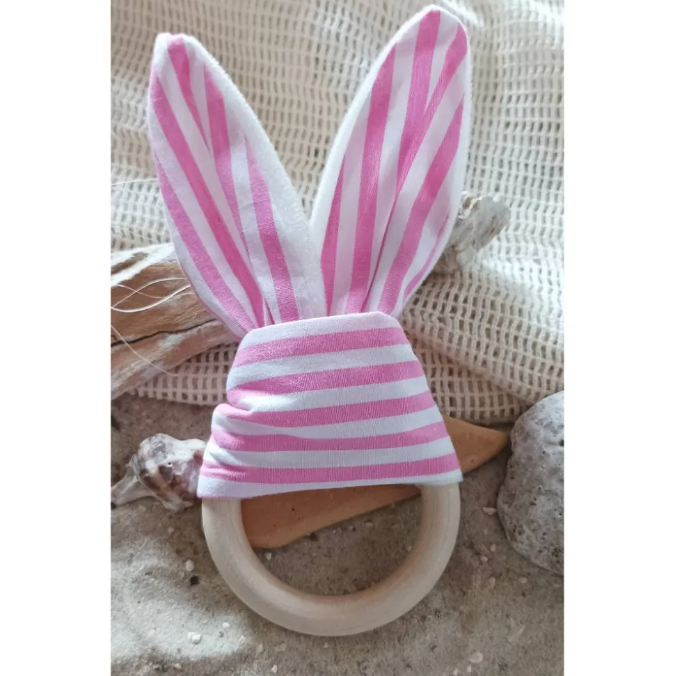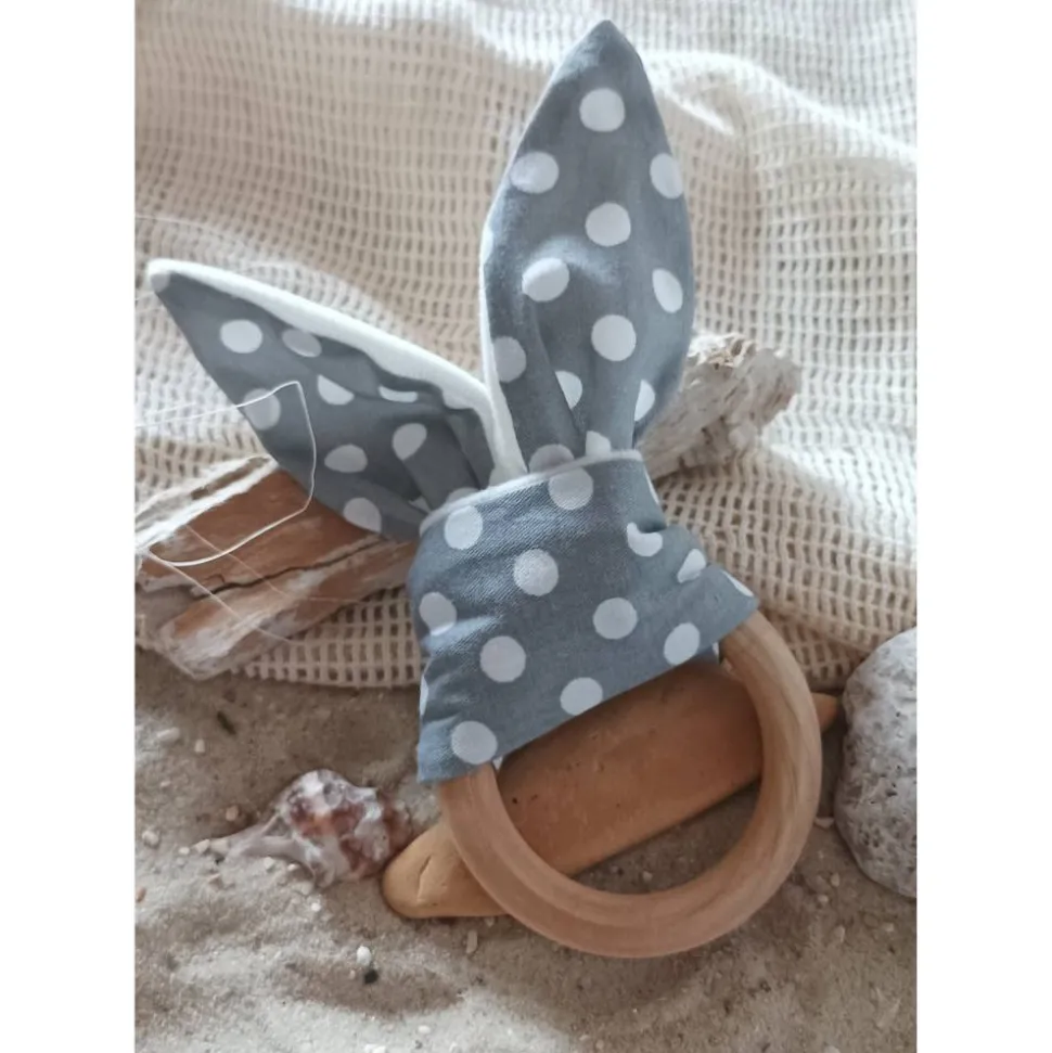 Die grauen Stofföhrchen mit weißen Punkten, sind abnehmbar, so ist es auch möglich sie zu waschen.